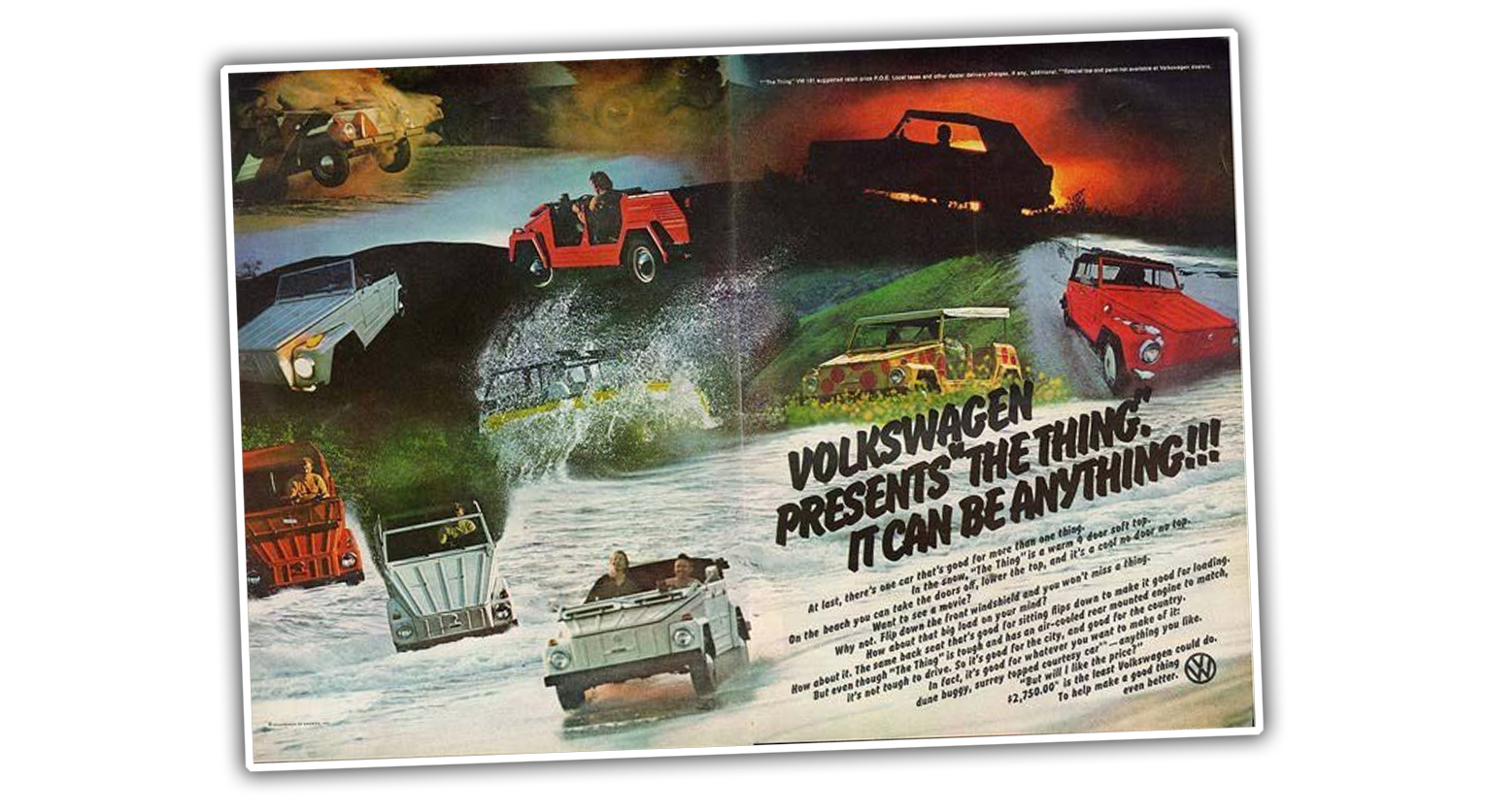 Every single time I encounter some strange air-cooled Volkswagen variant I hadn't previously been aware of I'm hit with the same, powerful sensation that the world is a vast, rich, nearly unknowable thing, and that's both terrifying and beautiful. This time the air-cooled VW weirdo is my favorite kind: a peculiar yet official factory-built thing, an adaptation of a car we all know: the VW Type 181, known as the Thing to us Americans. This time, VW tried to turn it into a truck for farmers.