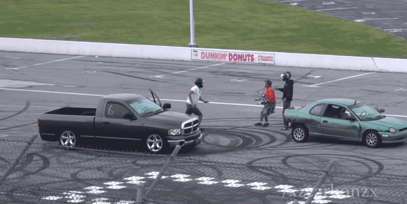 Is there anything better than watching two folks absolutely demolish their daily drivers? The walk of shame all the way home must have been horrible.