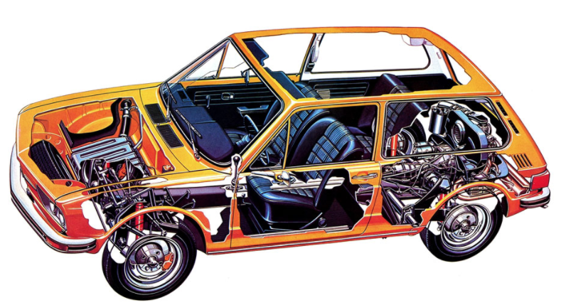 I'll admit, when it comes to cars, I often find myself drawn to the outlier designs, the weirder engineering, the trends that didn't catch on just because, well, that's what's interesting to me. Sometimes, though, an example of one of these engineering roads-not-taken surprises me in how, well, rational it seems, even when compared to the current orthodoxy in automotive design. I think the biggest example of this can be seen in an obsolete Volkswagen of Brazil design from the 1970s, especially when compared with the modern transverse/FWD designs that dominate automotive design today.