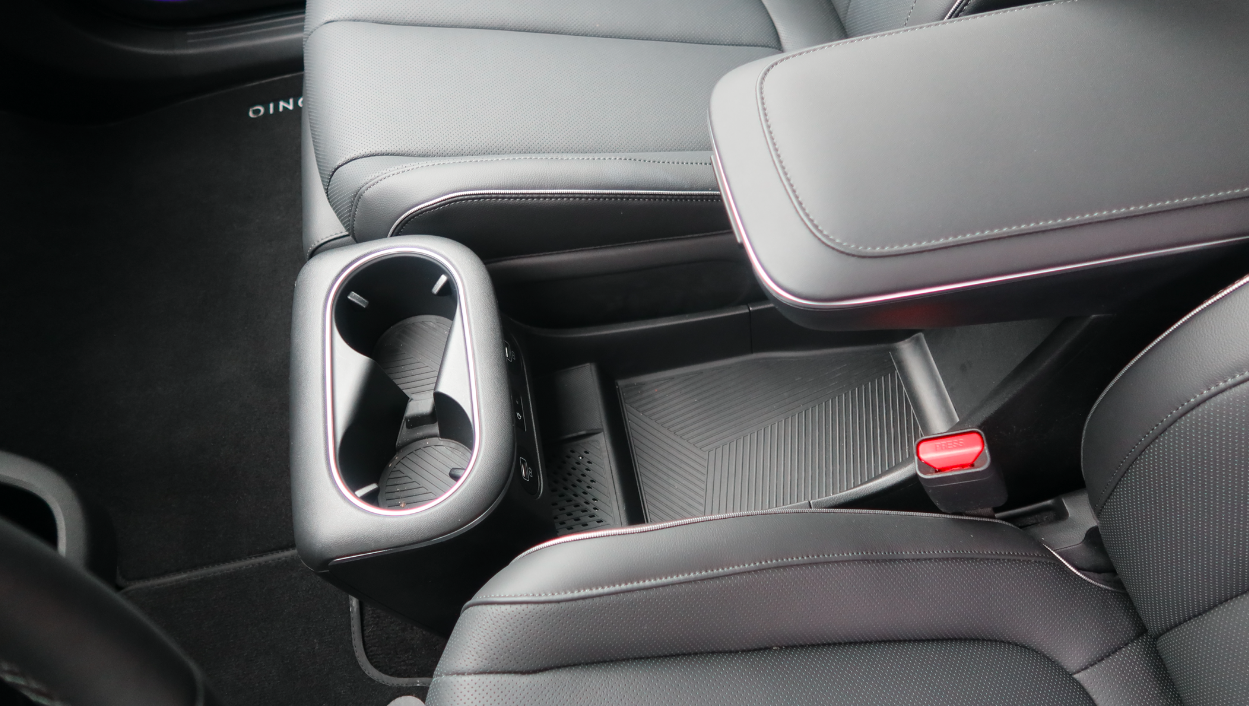 Plus, there's some storage under the armrest, and there's a button at the front of the base that allows the console to slide fore-aft, making it easier for a driver or passenger to slide across to exit or enter to/from the door on the far side. (You might do this if, for example, a car is parked too close to one of the doors.)