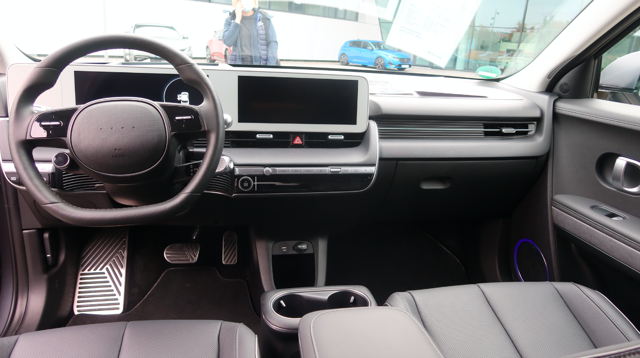 But different isn't always a good thing, and I think the steering wheel proves that. The Kia EV6's two-spoke wheel isn't pretty, I'll admit. But the Hyundai's is just bad. Come on: a blank wheel?