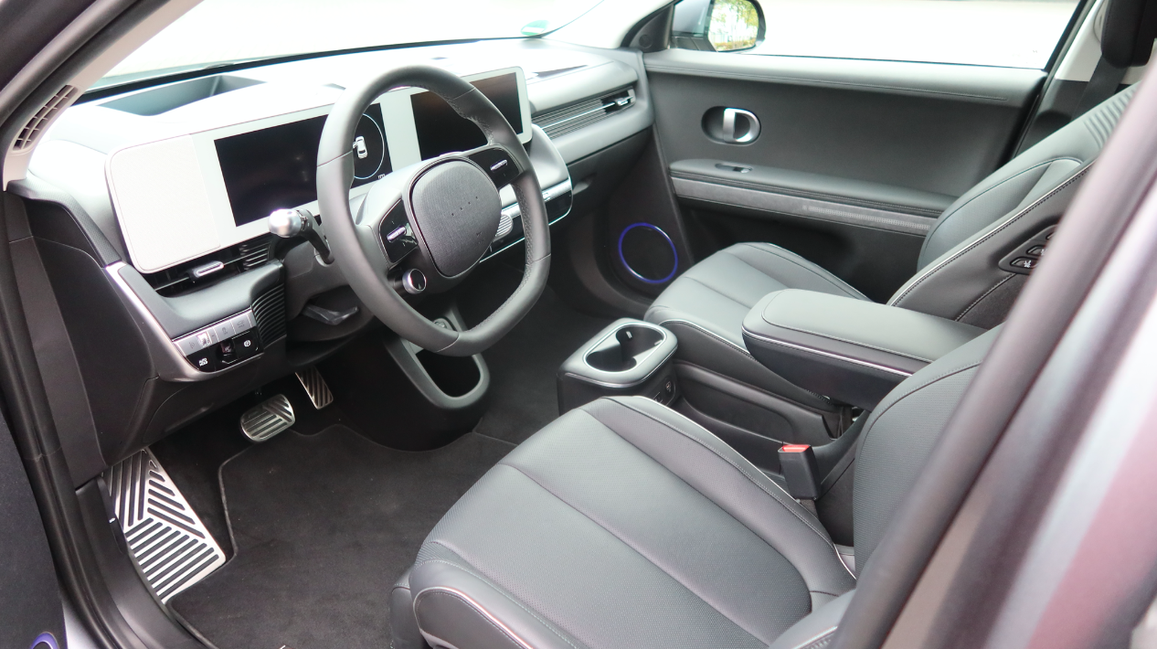 You know what the flat floor would be ideal for? Human feet — specifically those of a center passenger. Yes, Hyundai. You need to offer a bench seat. You're marketing this car as a chill, relaxed EV, and what's more chill than a front bench? Answer: Nothing.