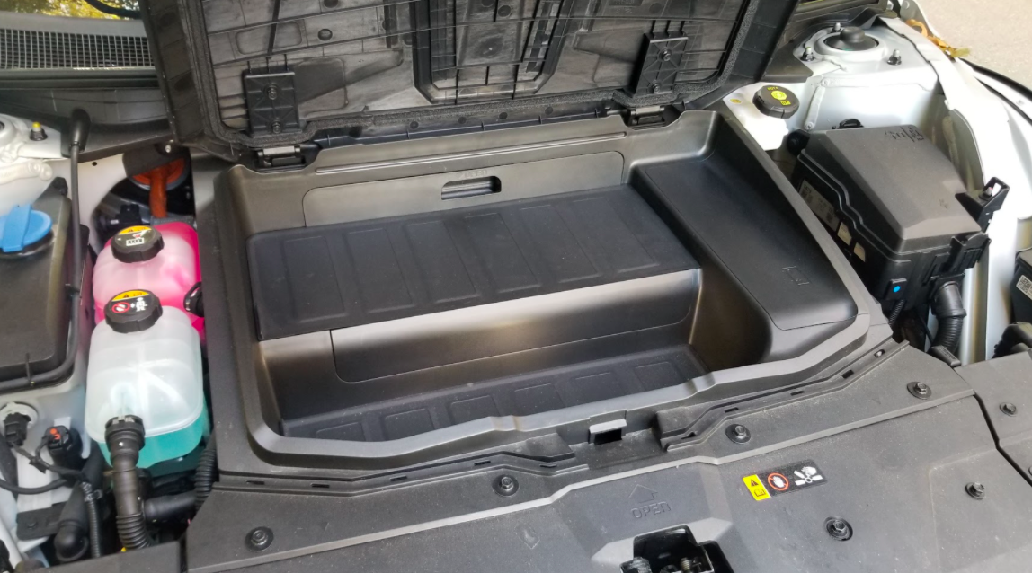You can see the small plastic frunk bin on the all-wheel-drive model above.