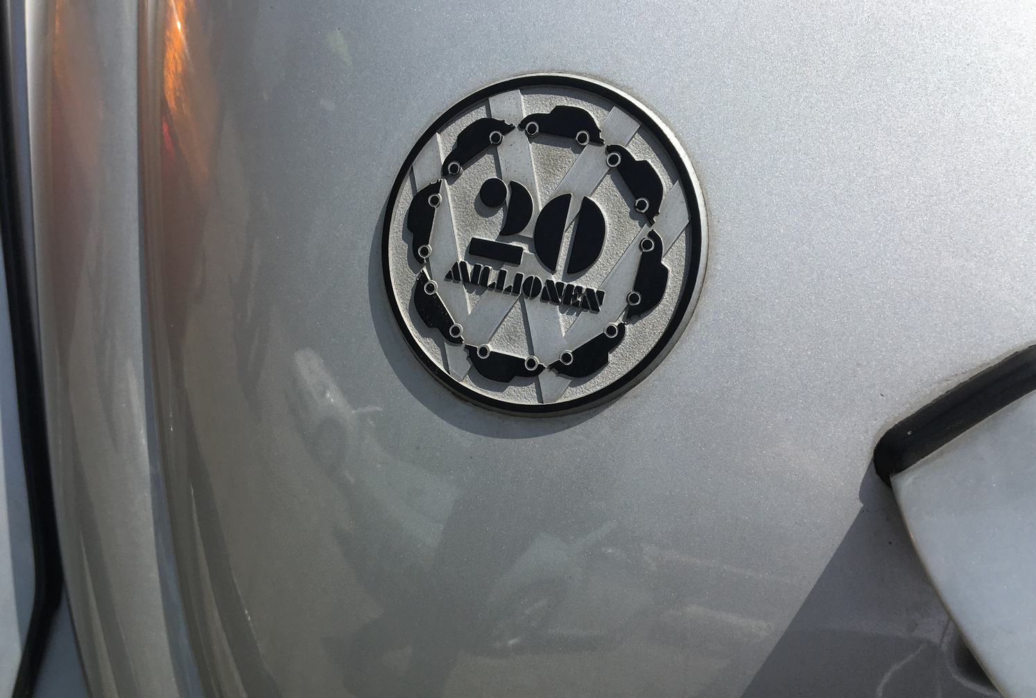 The 20 Millionth edition commemorates, as you'd guess, that VW had built 20 million Beetles, making it the most-produced car ever, beating out the Ford Model T. The commemoration part took the form of a badge: