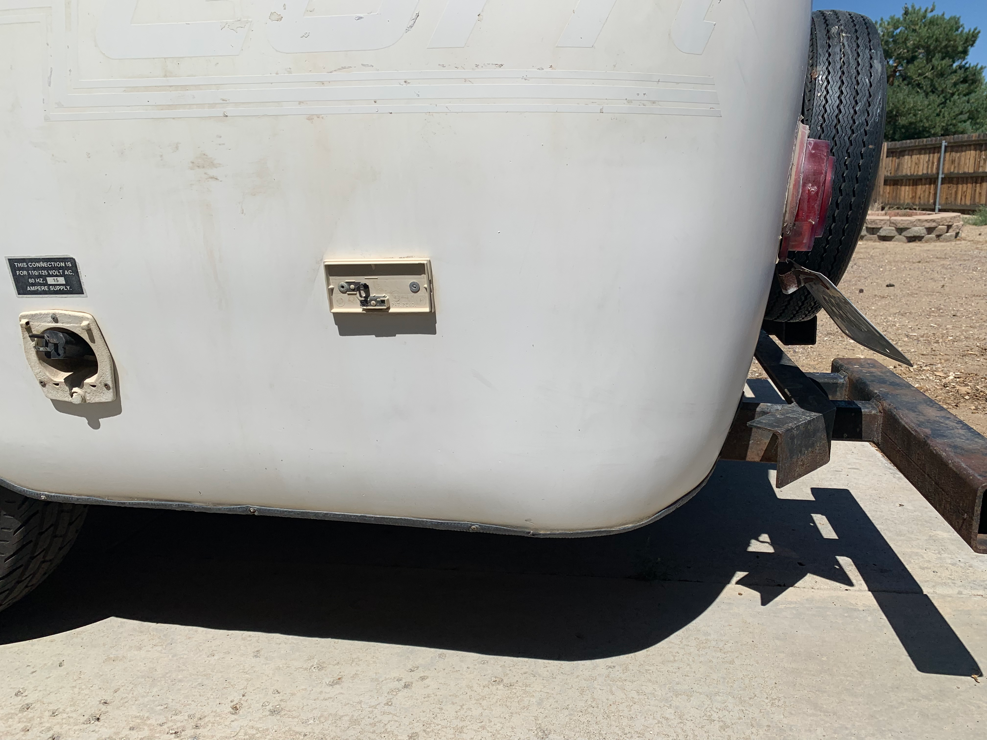 When we showed up to look at the thing, I knew immediately it had seen better days, but that it would end up following us home regardless. The metal trailer frame and the wood floors are solid, but the fiberglass shell needs some help. The thing had last been on the road in 2012, and the interior had a smell. All the same, the price was right at the bottom of what you can get these for. We paid the seller $4,000 and hitched it up.