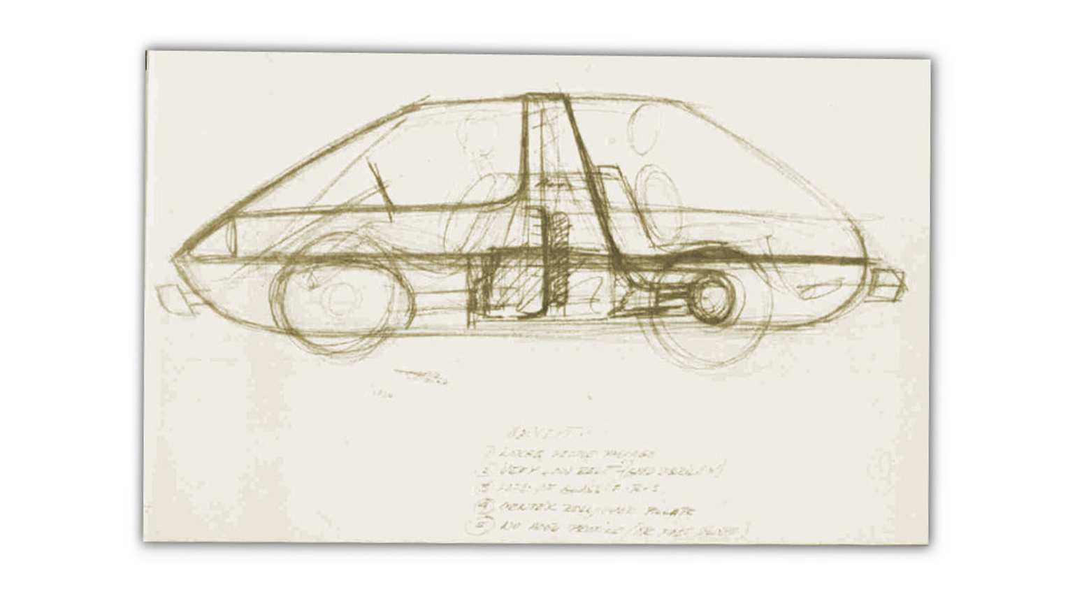 As you're all likely aware, the AMC Pacer was one of AMC's most bold and unusual designs. Dick Teague's original vision was even more wild and remarkable, a strange, mid-rotary-engined travel podlet with the rear seats facing backwards.