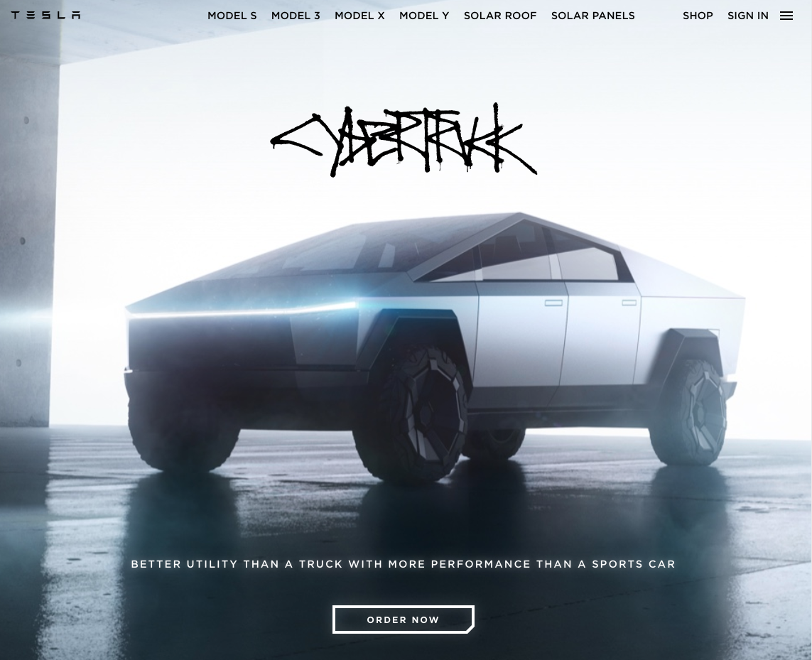 "The Cybertruck page on the Tesla website is informative but lacks some animation and flair."