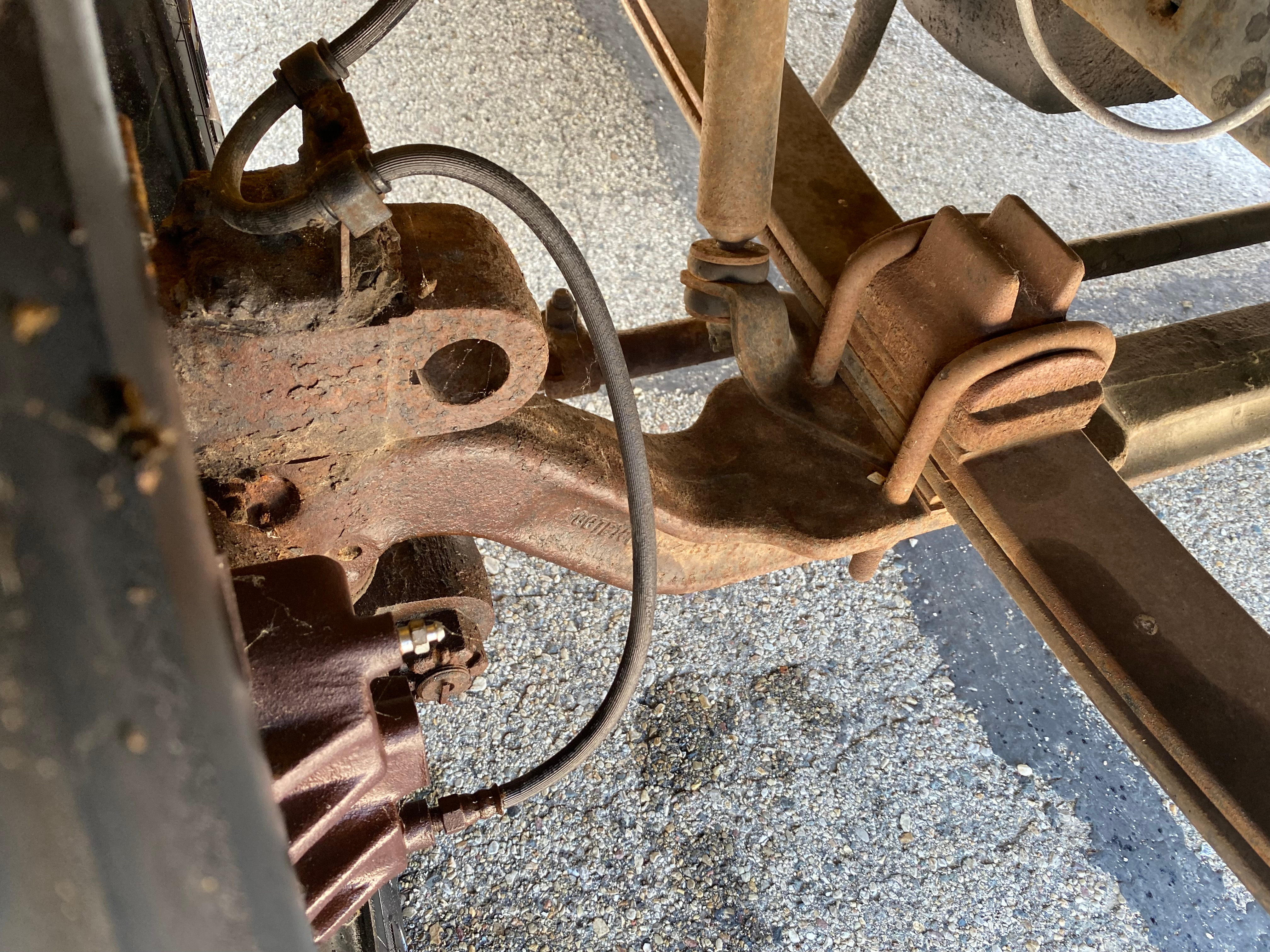 In the spring of 2021 I fired up the bus and took it for a short drive. Thankfully I didn't get very far outside of its parking spot before a massive brake line leak sprung. Amazingly, I was able to nurse the 17,000-pound bus back to its parking space safely despite the brake line absolutely pissing fluid onto the ground. An ominous brake pressure warning light glowed bright.