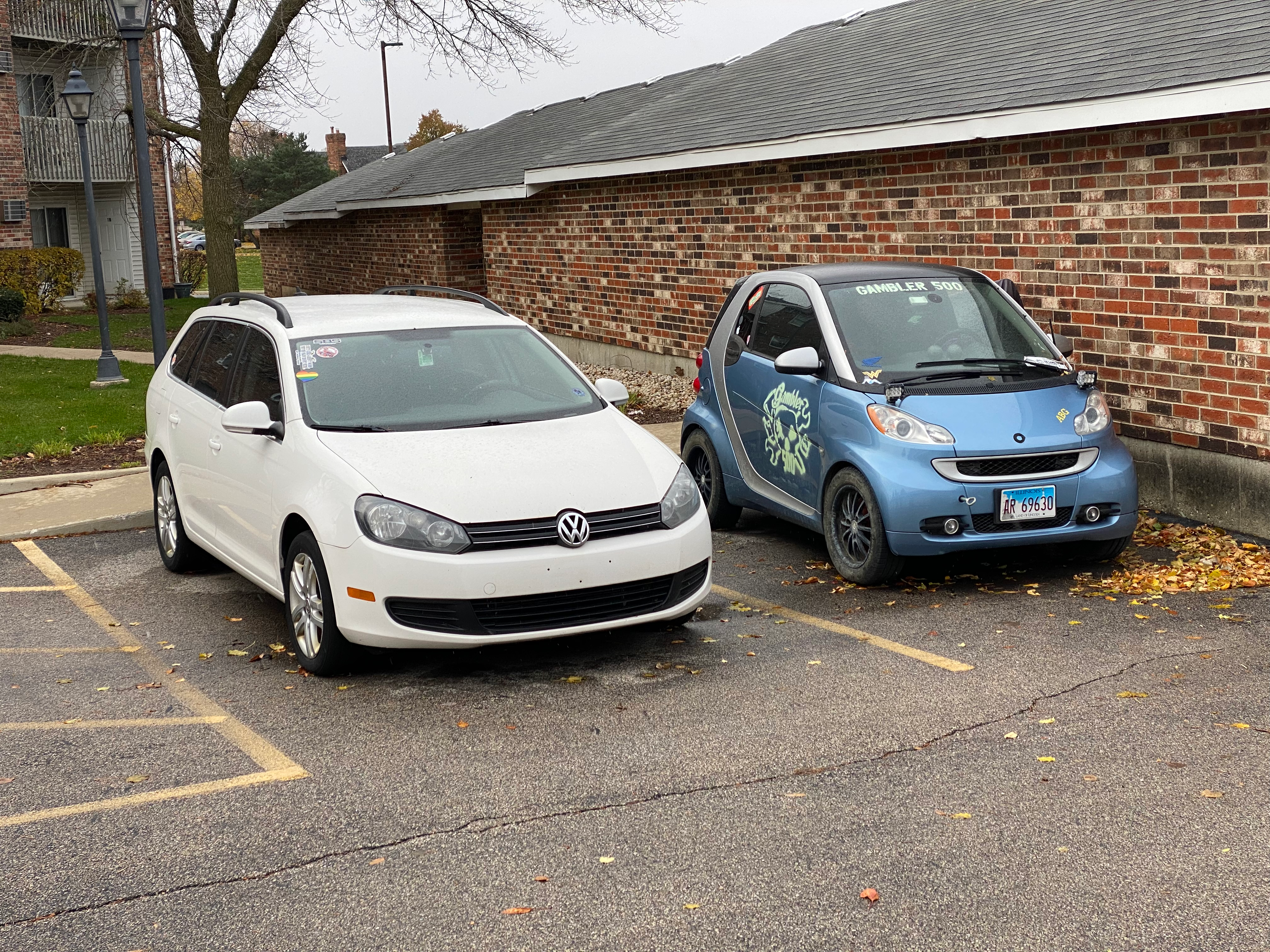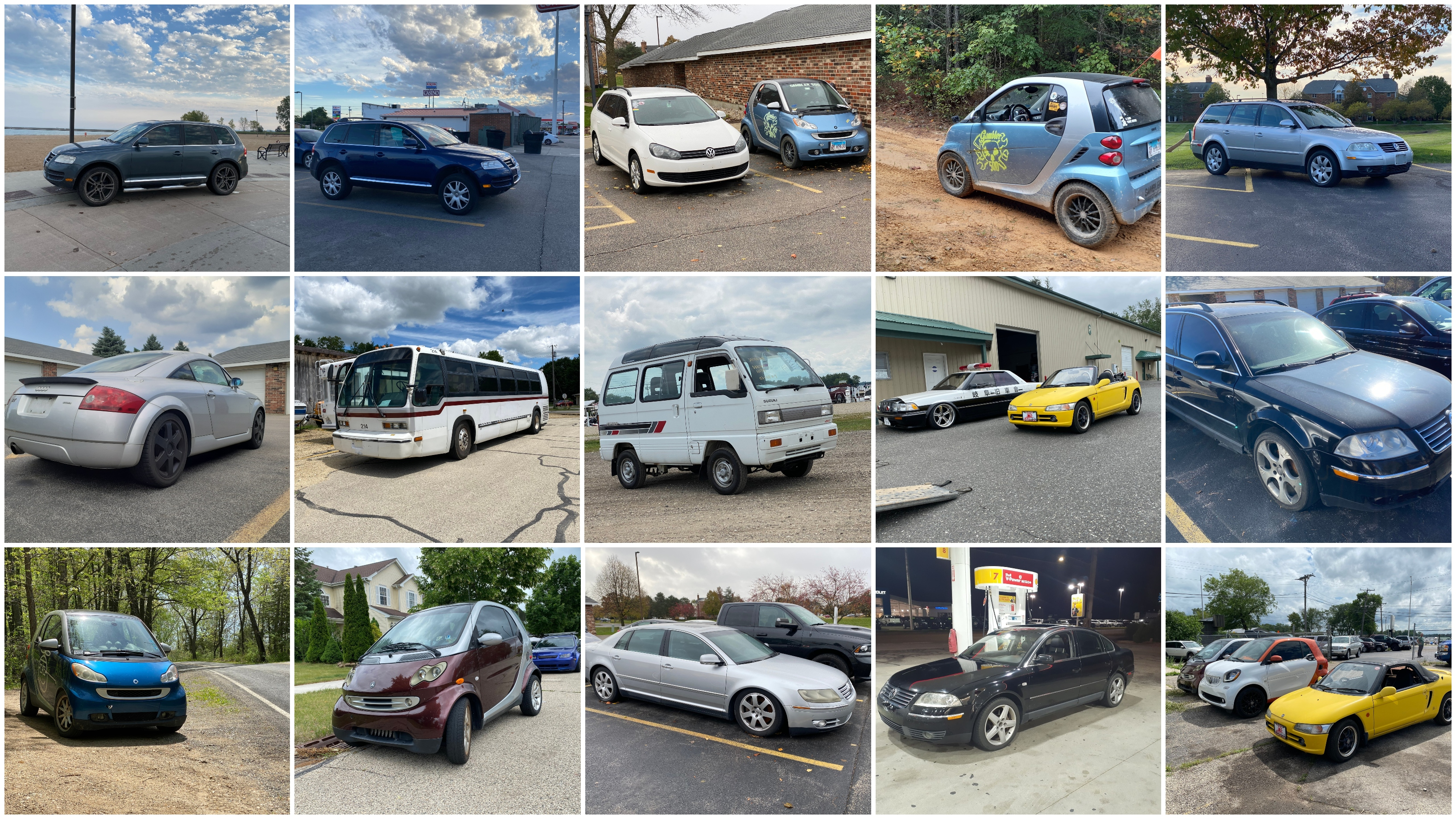 2005 Smart Fortwo – 25,000 miles.2008 Smart Fortwo – 112,000 miles.2012 Smart Fortwo – 157,000 miles.2016 Smart Fortwo – 6,000 miles.2002 Audi TT – 199,000 miles.2004 Volkswagen Phaeton – 160,000 miles.2004 Volkswagen Passat W8 – 166,000 miles.2004 Volkswagen Passat TDI wagon – 200,000 miles.2005 Volkswagen Passat TDI wagon – 234,000 miles.2005 Volkswagen Touareg VR6 – 187,000 miles.2006 Volkswagen Touareg V10 TDI – 192,000 miles.2012 Volkswagen Jetta TDI Sportwagen – 365,000 miles.1991 Honda Beat – 100,000 miles.1989 Suzuki Every – 56,000 miles.2002 Nova Bus RTS – 384,000 miles.