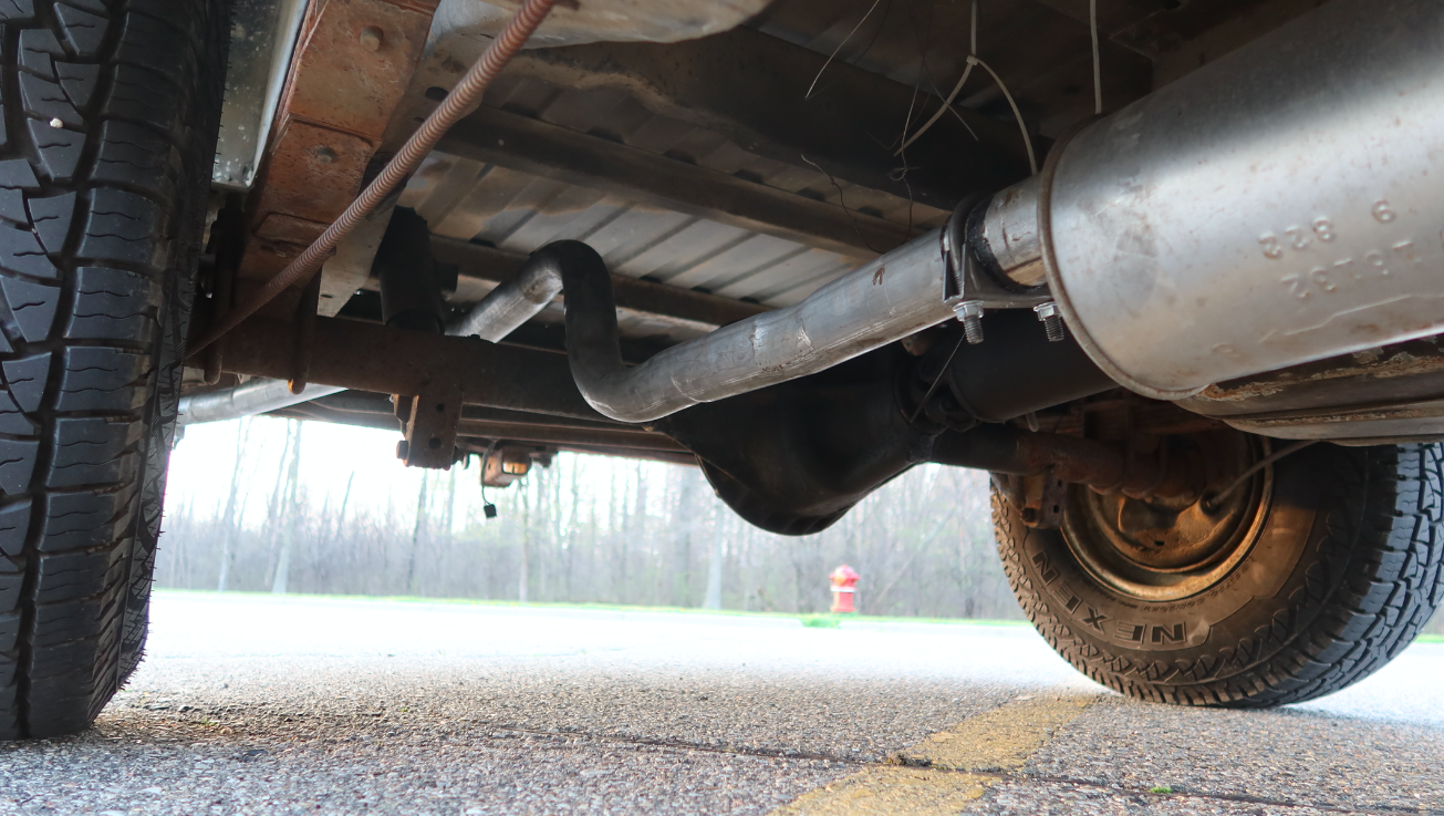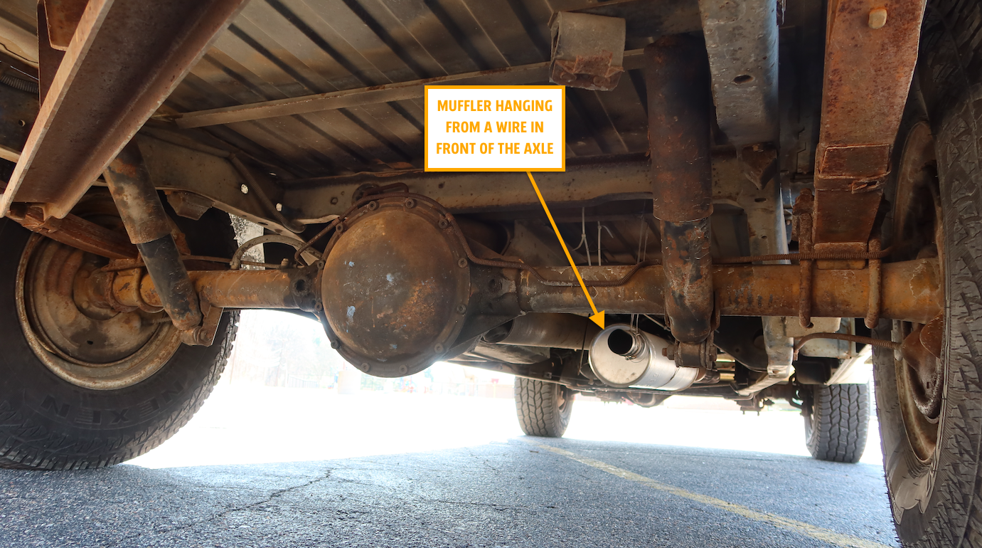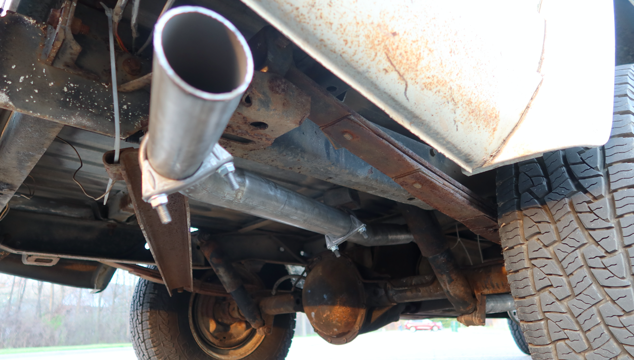 I drive the truck everyday when there's no salt on the roads and it performs truly flawlessly. Though there has been one issue since I bought the truck: It doesn't have a tailpipe. Actually, when I first picked the truck up from Yadkinville, North Carolina, there wasn't even a muffler (see above), which was unacceptable for a number of reasons. First, it let carbon monoxide into my cab, which was very dangerous and second, it was too damn loud.