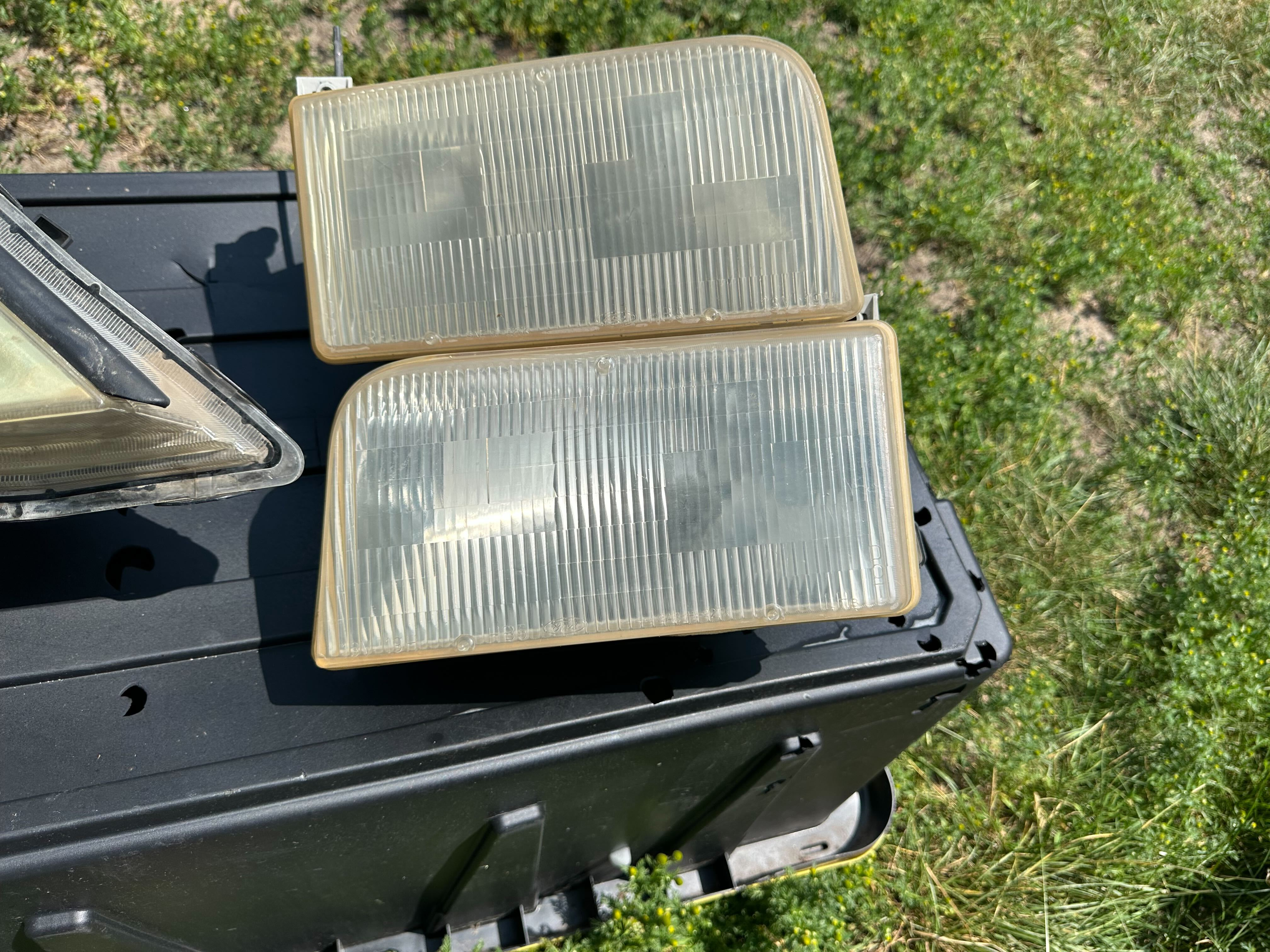 As I alluded to earlier, the most extraordinary part of the TikTok ad is the headlight cleaning part, so that's what I wanted to test first. I grabbed a set of old GX 470 headlights that I'd restored once, then replaced. Then I also grabbed a set of OEM plastic Ford F-150 indicators that had lived most of their lives in Colorado, and a set of glass headlights from the same car.