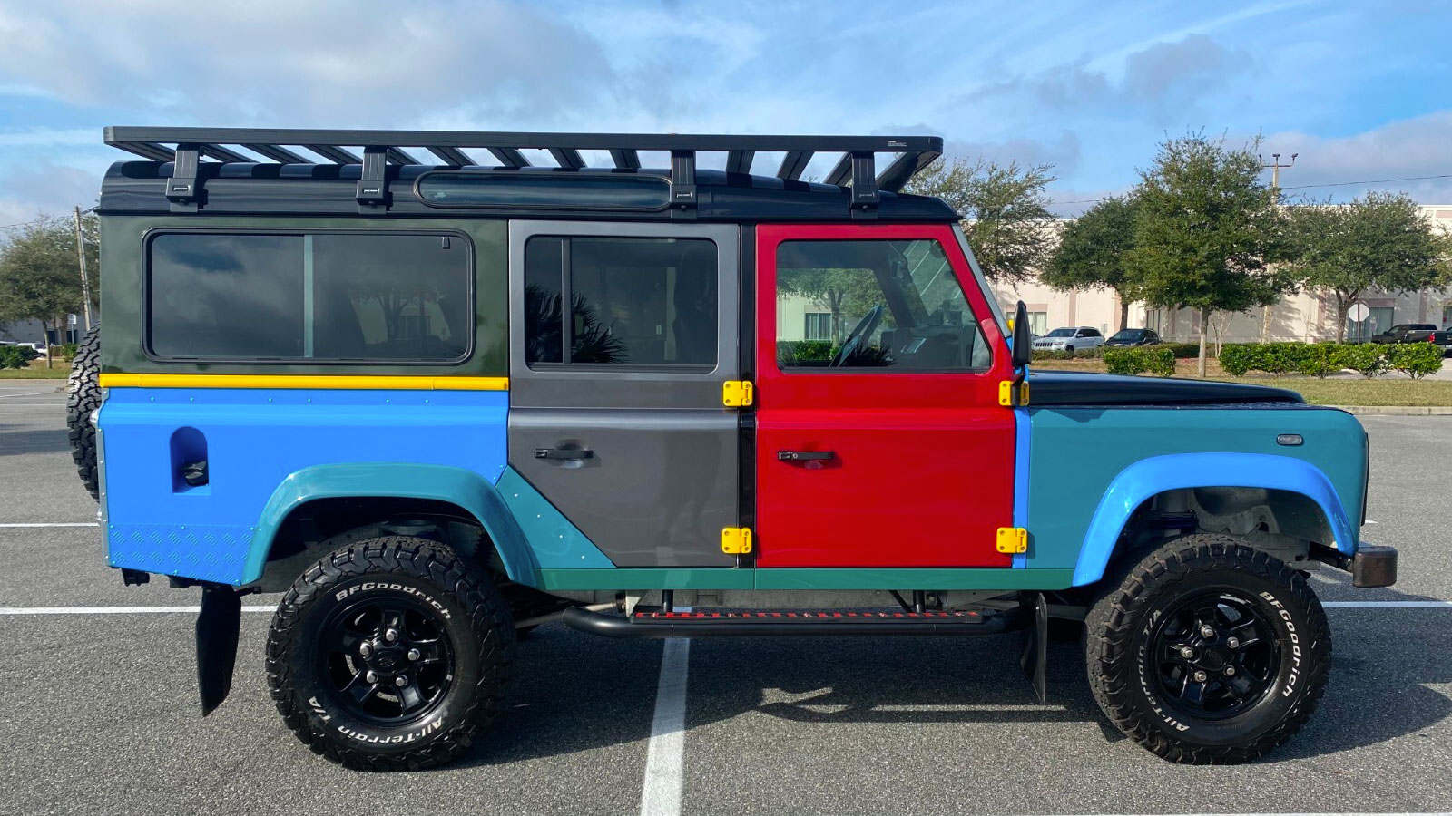 This particular Defender is a 1993 V8-powered 110 model with a manual gearbox. On the outside, every body panel has been finished in a different color and there are cool little accents, like those vibrant yellow hinges. Inside, it's all charcoal gray with signature Paul Smith stripes down each seat. Definitely "fun, but different," without spending your entire budget.