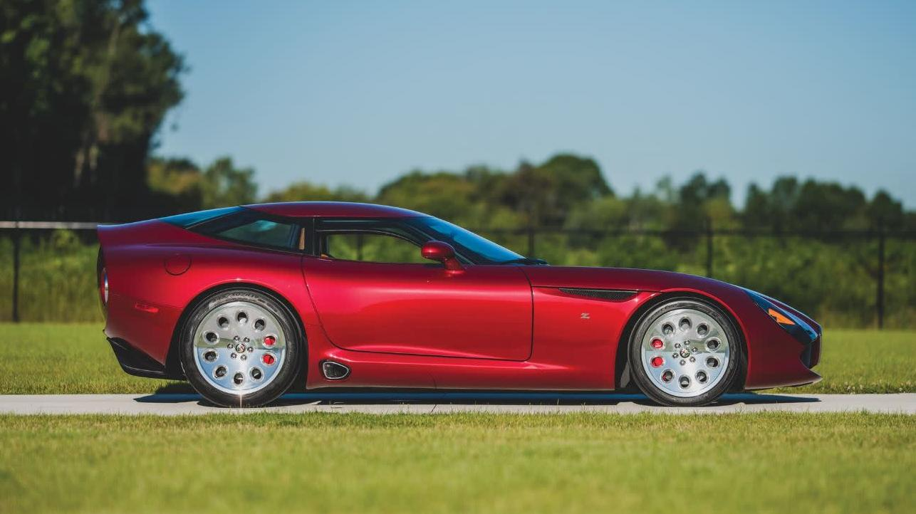 You can also sort of see the Viper's profile in the TZ3 Stradale Zagato—the long hood, the short tail, the side-exit exhausts. But then there's the Alfa nose, notable Zagato double-bubble roof and Breadvan-ish shape to the tail.