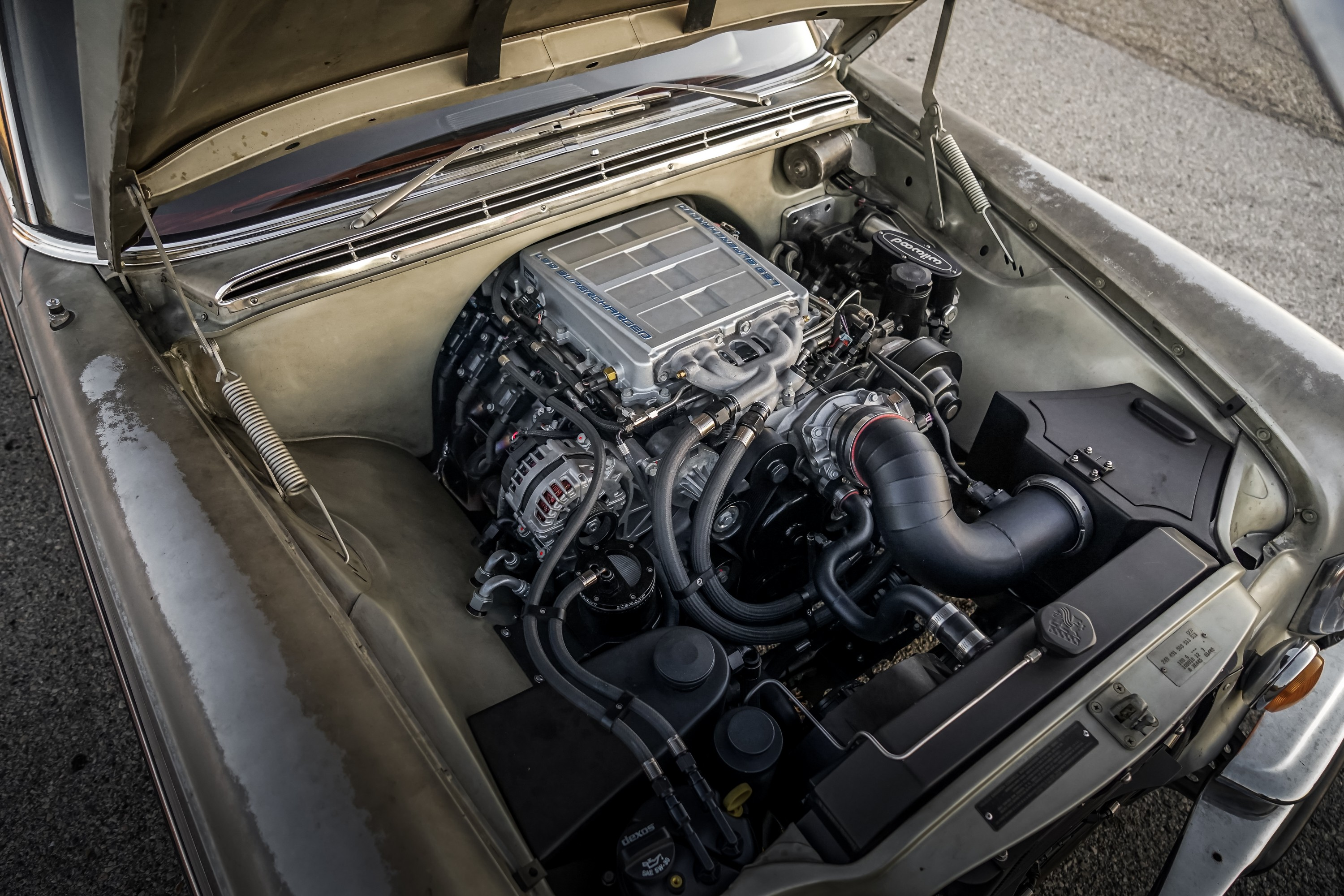 Of course, 247 hp isn't anything to write home about these days, so as he's done with several other Icon builds, Ward turned to General Motors — specifically, the venerable supercharged LS9 V8 from the C6 Corvette ZR1. The modern motor has a ton of advantages over the ancient (and elephantine) Mercedes mill. First, it's way more powerful. In this application, it's running in a fairly detuned state, sending around 470 hp to the wheels. (In the ZR1, this engine put out 638 hp to the crank.) It's also significantly smaller, lighter and more reliable than that 50-year-old German SOHC V8, which is a shock, I'm sure. The engine is paired with a 4L85E four-speed auto, also from GM.