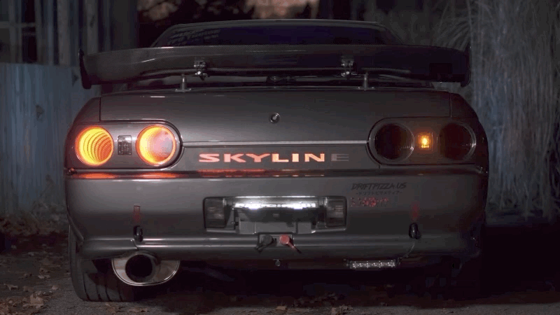 I don't always like high-tech whimsy, but when I do, it's artistic and absurd like the lighting setup on this 1991 Nissan Skyline.