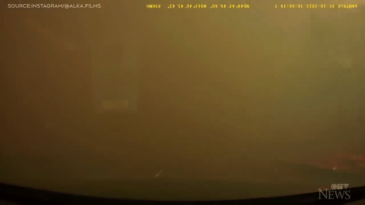 There aren't a lot of places in Canada to go to avoid the fires, unfortunately. A map of yesterday's fires showed a majority of provinces are experiencing some kind of fire. And if you're not near a fire, you're getting hit with the smoke. The result of this is air so polluted that it can irritate skin and eyes, burn lungs, and reduce visibility to nil.