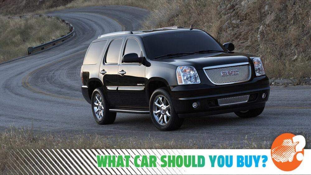 Bernard is a big guy with an aging 2004 Yukon Denali. He needs something with comfort and luxury but doesn't want to be averaging 14 mpg. He would also like something a bit flashy so what car should he buy?