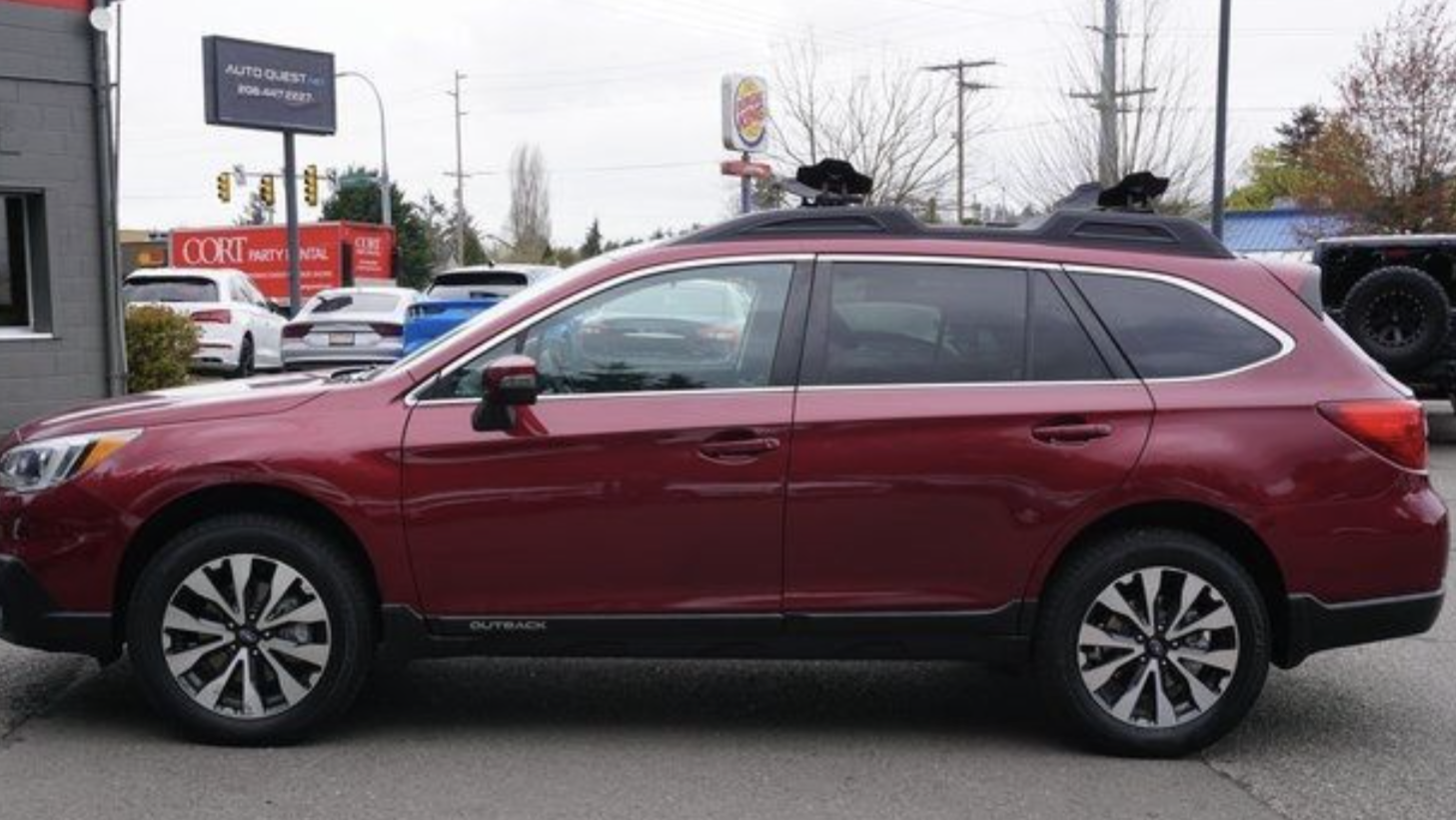 Here's a 2017 Subaru Outback Limited in Renton with just over 93,000 miles on it for a little less than $20,000. It's significantly newer than your wife's Sentra and includes all sorts of features that hers probably doesn't, such as heated front seats. You'll definitely appreciate those when Washington gets cold. And your dogs will appreciate not being as cramped as they would be in a Crosstrek.