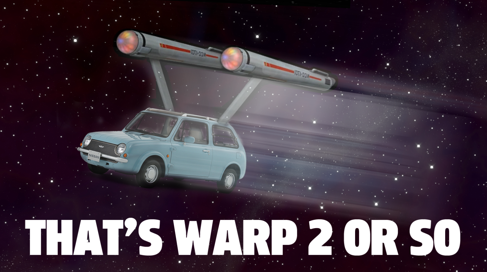 So, by this logic, my little 52 HP Nissan Pao is capable of sustained cruising at Warp 2, but I can push it to Warp 3 if needed, but I'm not really inclined to push it for that long.