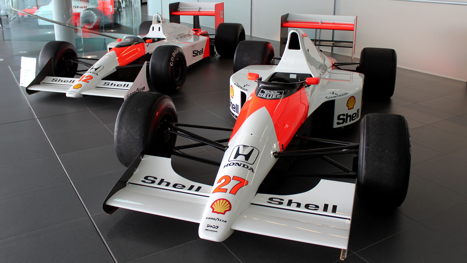 The McLaren MP4/4 on the left is arguably one of the greatest F1 cars of all time. So, to see an immaculately restored, race-ready F1 car from the 1980s sat right there was a pretty special moment.