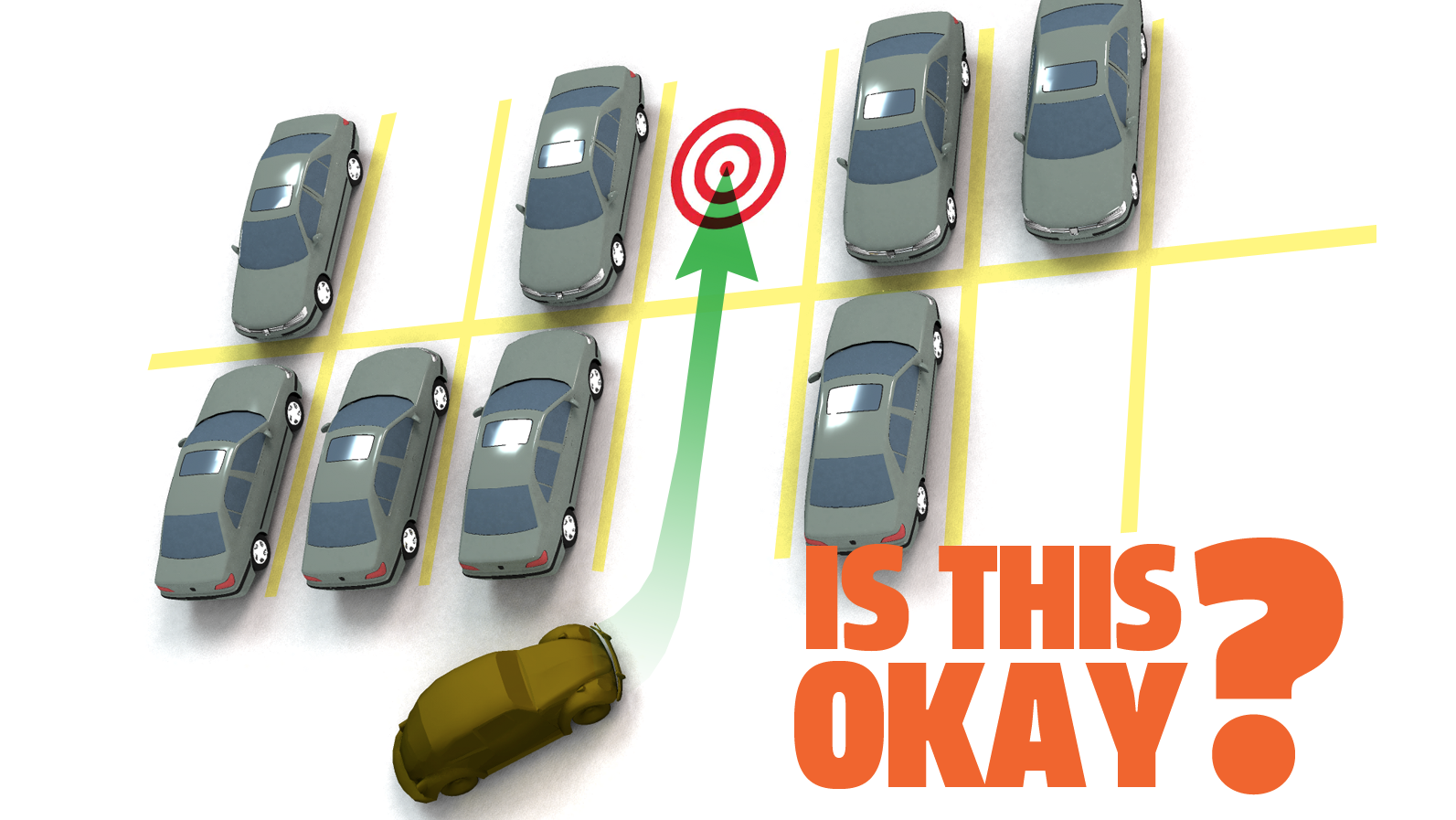 I'm not sure I fully realized how contentious this concept is, or how divided people are about this relatively simple concept: when you're in a parking lot with spots that meet back-to-back, is it okay to drive through one empty spot and directly into the empty spot connected to its end? A question a child might ask, but not a childish question. Also, why are you letting that child drive? This is serious business.