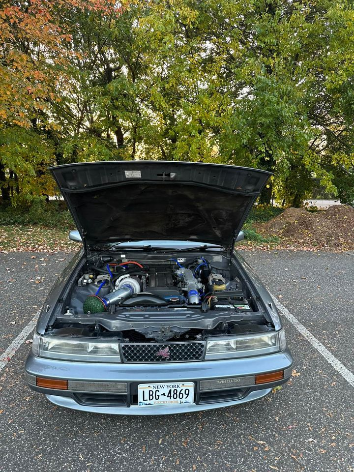 The eagle-eyed among you will recognize that this Soarer is not quite stock. That engine, the 1JZ, didn't hit this nameplate until the following generation — this older model has been modified to put a bit more fun under its understated hood. A 1JZ, a 6262 turbo, and a giant wastegate is a classic recipe for grins.