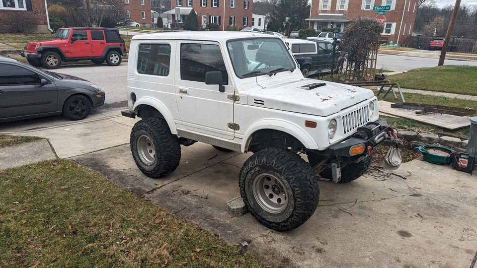 This, though, approaches the apex of the art: A tiny little Suzuki Samurai atop 33" wheels that would be big on a Rubicon. When the wheel-to-body-size ratio gets this absurd, how can you not start to love it? I no longer care if this Suzi actually ever ventures off road, I just want to see it bouncing along wherever I go.