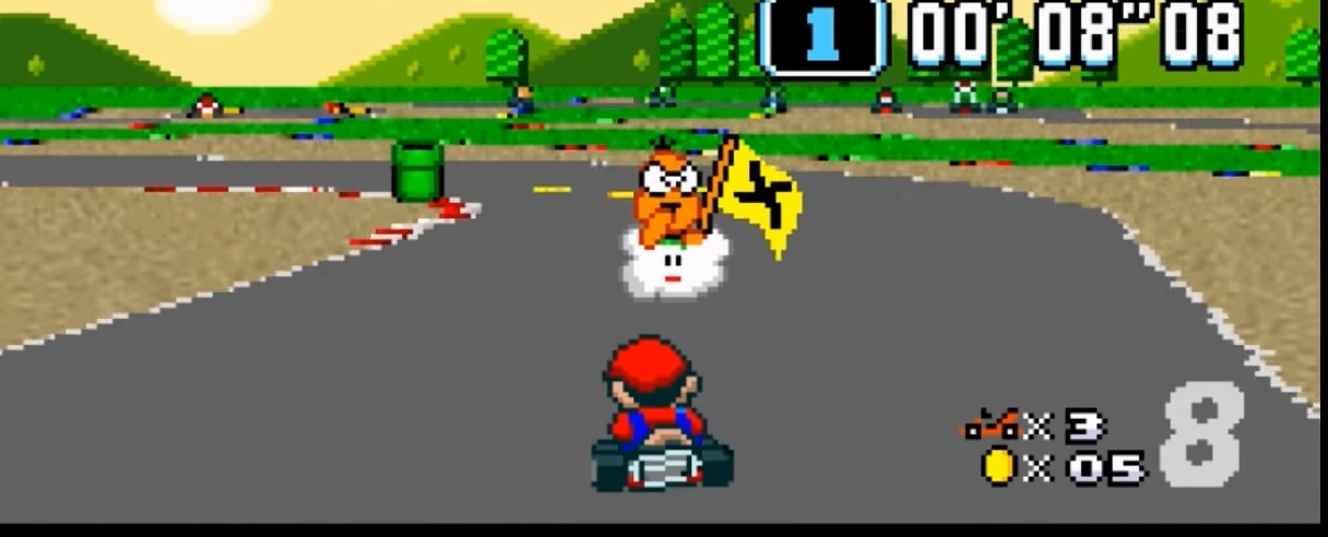 You're telling me this game existed for five years and nobody, not one bored kid, not one curious gamer, not one idiot doing it for the lulz, ever tried to race backward? That's literally the first thing I do in every game. That's how I found out Lakitu would come shake his finger in your face if you tried that shit in SMK.