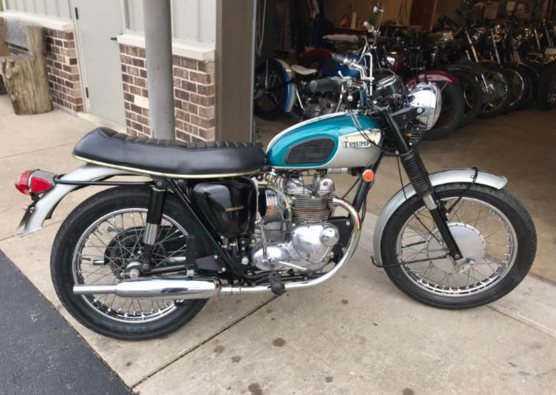The Triumph T100R Daytona Super Sports is named after Buddy Elmore's 1966 Daytona 200 motorcycle road race win. The T100R Daytona Super Sports was a 500cc twin inspired by Triumph's racing bikes. It was good for about 41 HP with top speeds over 100 mph. It's a classic bike with some history.