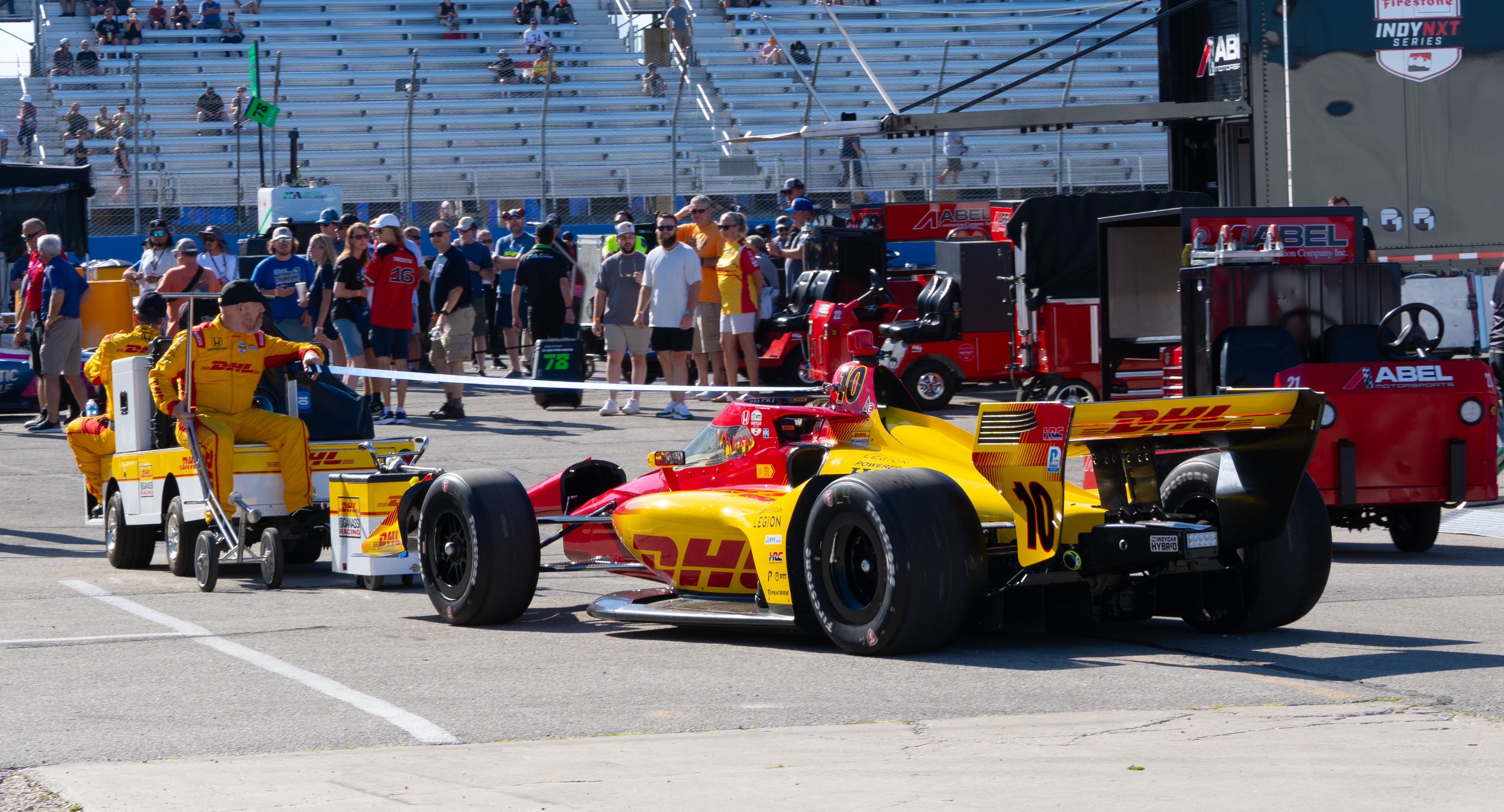 Very few atmospheres compared to being inside a track's paddock before a race. It's like being inside a football team's locker room before a big game. Here's the car of soon-to-be champion Alex Palou at the Milwaukee Mile, the IndyCar season's penultimate round. Palou's car would break down moments later during the warm-up laps.