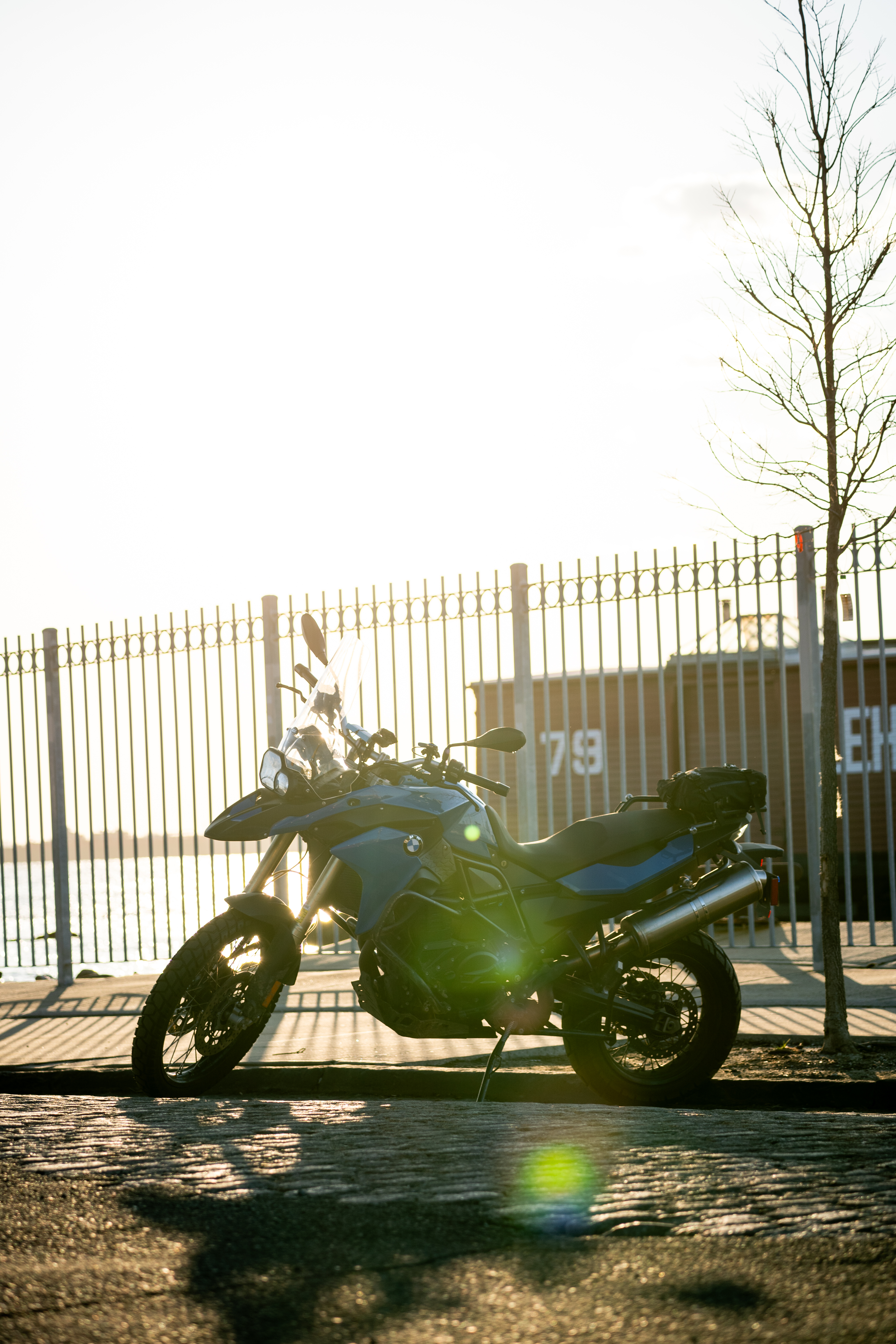 My favorite photo isn't of a press car, it's my own bike — my beloved F800GS, which could become your beloved F800GS for a mere $7,100. I love the way the sun sets in this part of Red Hook, how it silhouettes motorcycles and causes lens flare out in front of them. I took similar shots last year, and I'll take more next year, with even prettier bikes.