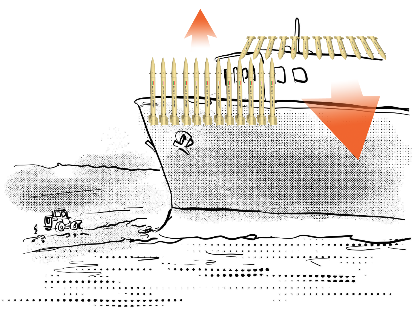 So, what the Suez people need to do is buy a bunch from Egypt (sans warheads), and put them in two main groups: one set mounted horizontally, to provide lateral thrust, and one set vertically, to pull up on the ship. Here's a quick diagram: