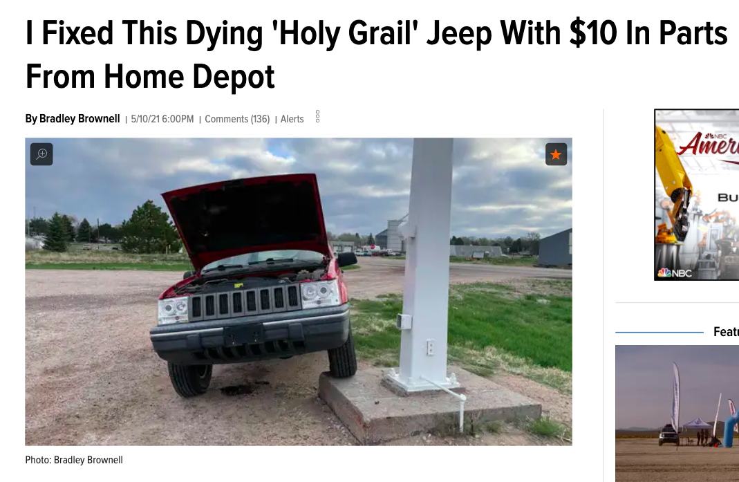 Obviously, I'm going to include this article, because it's about a road trip in an old Jeep, namely my own. But that's not the only reason why; the way Bradley describes his road trip from Reno to Detroit is just fantastic: