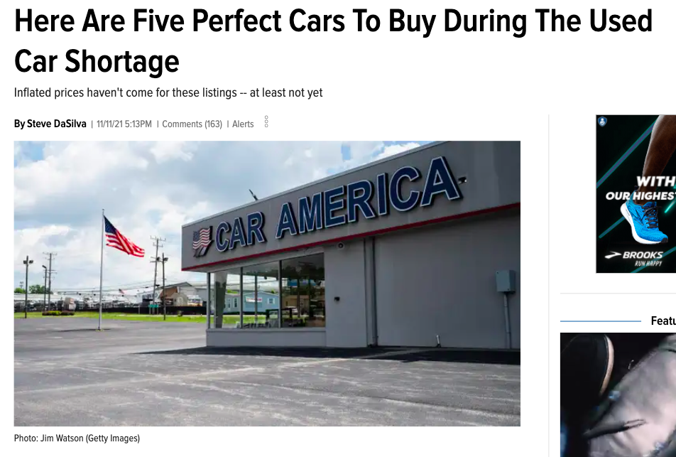 I think Steve DaSilva's "Here Are Five Perfect Cars To Buy During The Used Car Shortage" (a story idea inspired by veteran Raphael Orlove) has what it takes to be an iconic story, because it's just so surprisingly hilarious and supremely shareable.