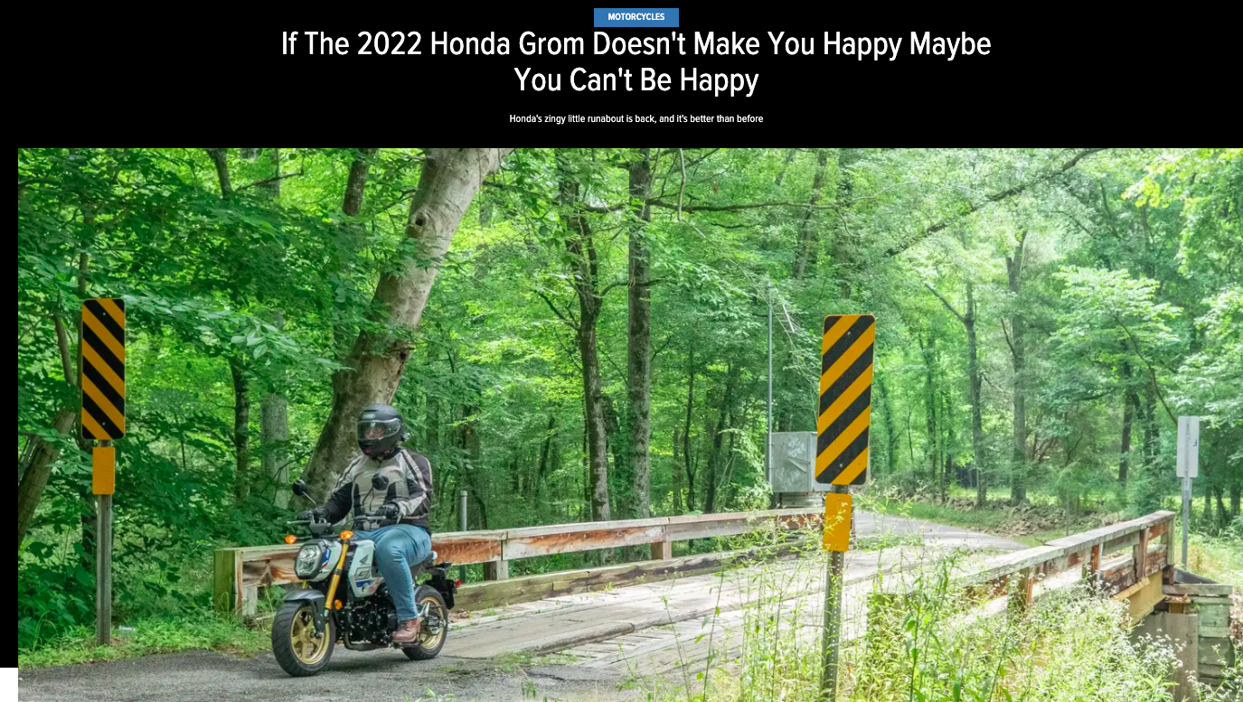 While we're on the topic of two-wheeled contraptions, we'd be remiss if we didn't show some love for Bradley Brownell's motorcycle reviews. Like this story about the epic Honda Grom or "Two Days In The Desert On An Electric Motorcycle," which about the all-electric Zero DSR Black Forest.