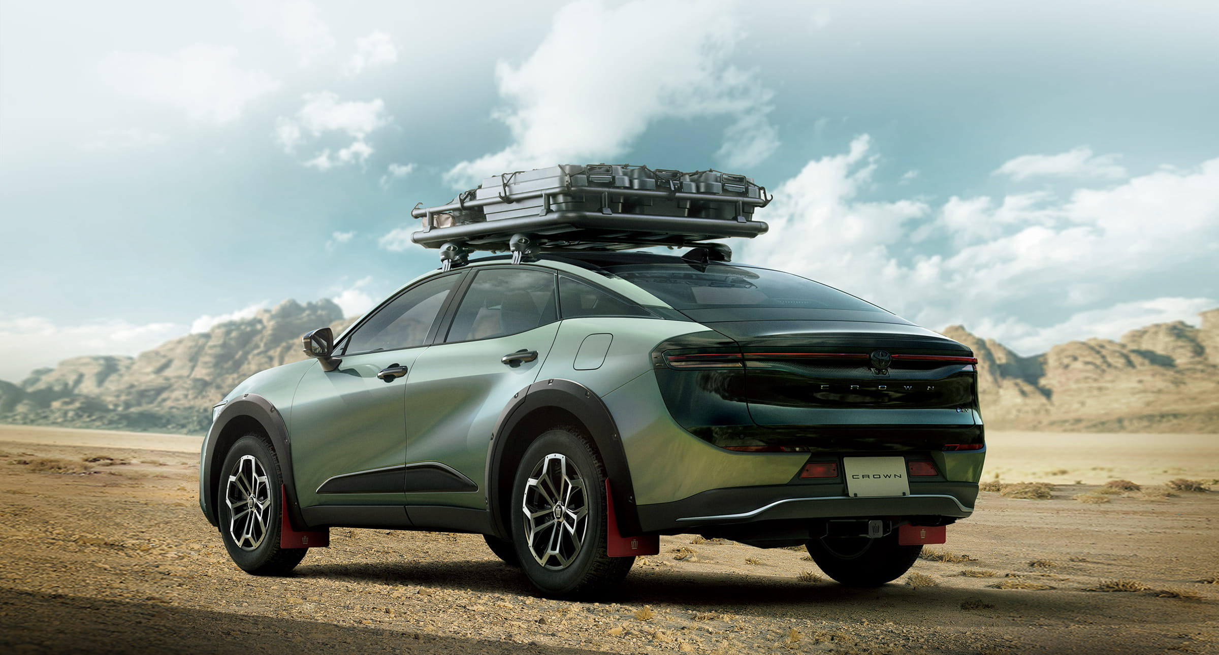This new Crown Landscape model is all about exploring the outdoors and going off the beaten path. It's finished in a nice two-tone paint scheme of black and a green color called Urban Khaki. As for the rough and ready stuff, the Landscape gets nearly an inch more ground clearance over the standard Crown, 18-inch wheels with all-terrain tires, fender moldings painted in Gori Gori Black paint, and red mud flaps. In case you want to haul more, there's an optional dealer-installed roof rack and a standard tow hitch that gives the Landscape the ability to tow just over 1,600 pounds.