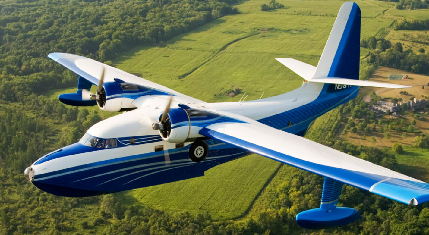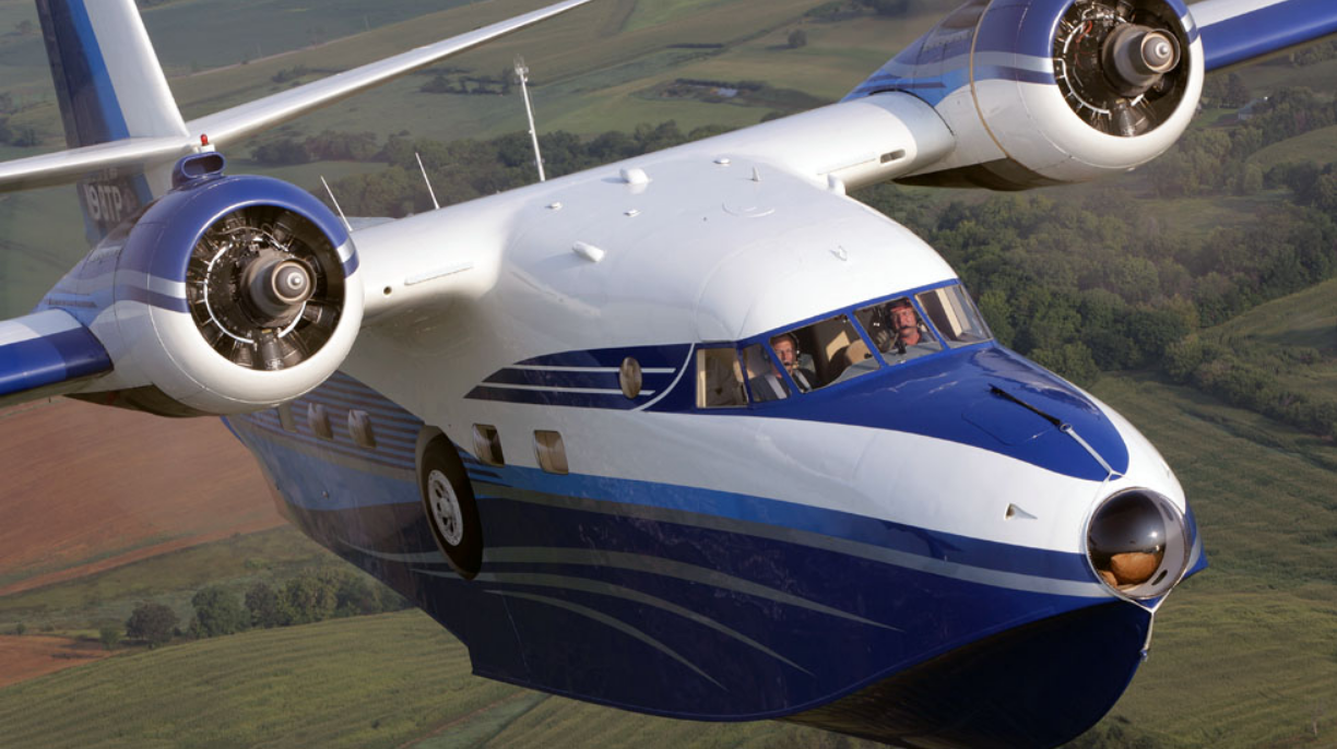 The Grumman HU-16 Albatross, tail number N98TP, is owned by TP Aero, a Minnesota-based company dedicated to maintaining and restoring historic aircraft. N98TP is a rare breed, being an amphibian that can land on the ground with wheels, land on water with its hull or land on snow with skis. The flying boat is powered by a pair of Wright R-1820 radial engines.