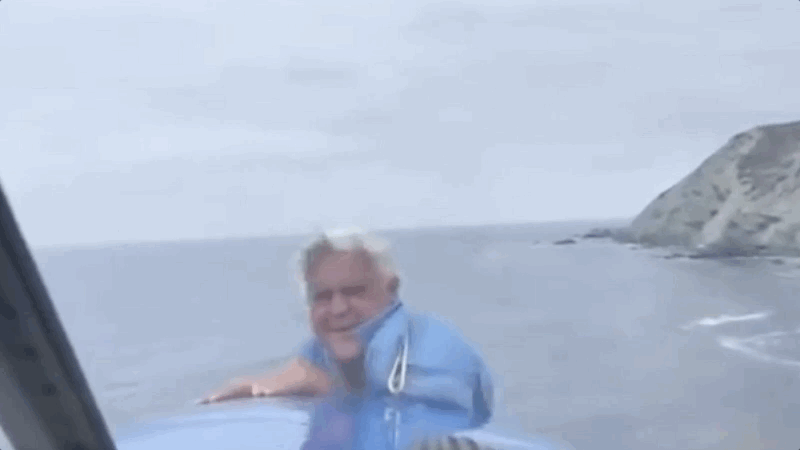 Jay Leno Climbs Out Of The Nose Of A Flying Boat In Flight