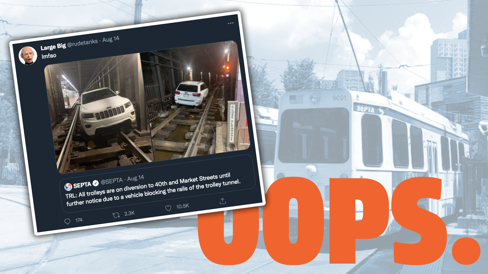 Ironically, SEPTA had announced closures for the weekend elsewhere in Philly that would also interrupt service for a so-called "cleaning blitz." Those closures were supposed to let employees "focus on cleaning efforts like power washing and the removal of litter, debris, and graffiti," but I'm pretty sure a whole Jeep Grand Cherokee isn't what officials meant.