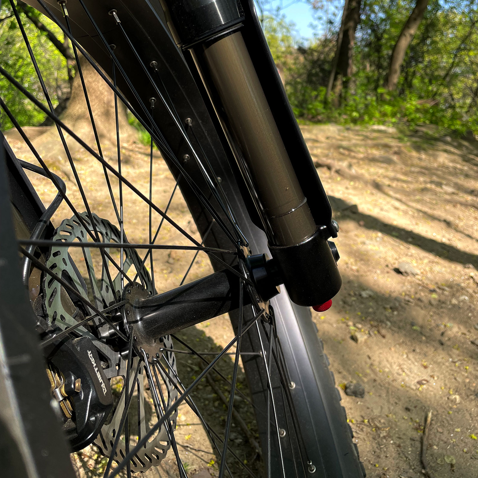 I did find the bike's limit when I took an excursion onto more technical trails. Because of the Jeep's sheer size, navigating tight turns is a challenge and its chunky tires would sometimes stick between rocks that other bikes would easily pass through. Sure, you can solve this by swapping the wheels out for standard 29" MTB rims, but in its stock setup that's not ideal. It was also while hopping in and out of the saddle that I longed for a dropper post, which is something that comes as standard on a lot of other e-bikes at this price point.