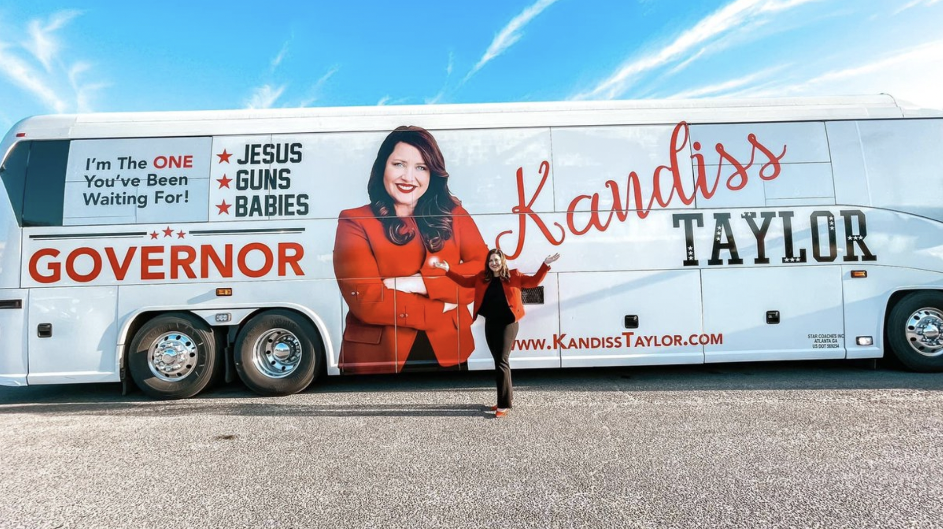 A quick glance at Taylor's website shows she has a few other interests not included on her bus wrap, like improving "election integrity," while perpetuating the lie that the 2020 U.S. election was rigged. She also launches right into attacking that paper tiger critical race theory and actually useful comprehensive sex education.