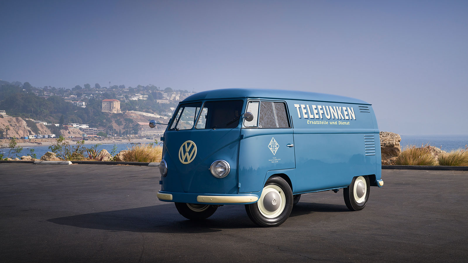 This panel delivery iteration of the Type 2 was painted blue and finished with the logo of Telefunken, a German radio company. When it was built in 1954, the Type 2 used a modified version of the Beetle's floorpan and the same 30-hp flat-four engine.