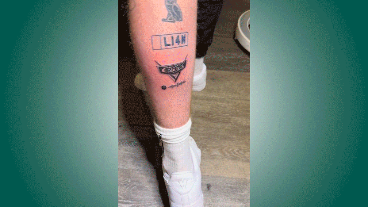 What we've got here is a dude's leg posted to TikTok. That's not interesting in itself, but what really is interesting is what he has tattooed on it. At first glance, it looks like the logo from the brilliant 2006 film Cars. That's badass in its own right. Cars is one of the sickest movies ever. But, if you look closer, you'll notice a tiny Spotify logo and a bunch of small, vertical lines. Babe, that's a QR-code-style link.