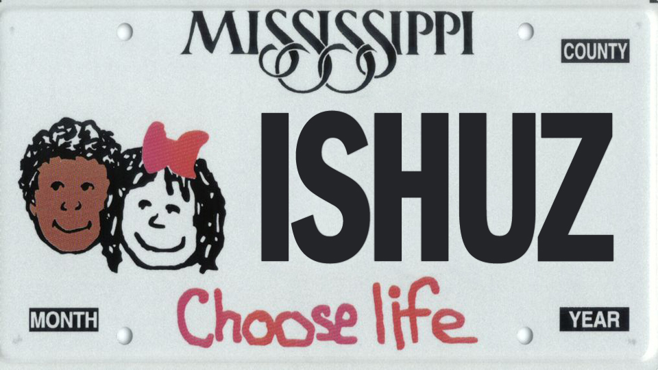 You have probably seen a "Choose Life" license plate before. Over two dozen states offer them, and most feature the same cloyingly shitty crayon drawing of a little boy and a little girl. They're meant to suggest that the plates were designed by children, so young that they haven't even had the misfortune of discovering talent yet. This is innocence unsullied; you'd have to be some kind of monster to want to quash whatever life drew this twee little thing.