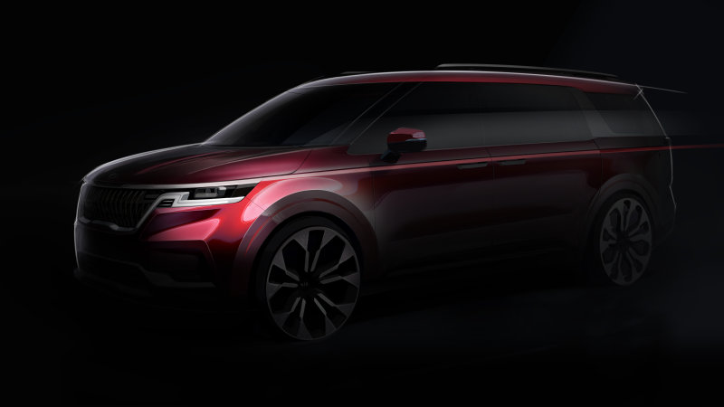 The teaser above is for the South Korean Kia Carnival van, though the current generation is marketed and sold as the Kia Sedona in the U.S. This latest design comes from the automaker's South Korean design studio, and along with new made-up vehicle designation, it's design has pivoted more to the aggressive, boxy and tall SUV stature, over the more straightforward, wide and low van look. At least that's how it's meant to look in the teaser sketch.
