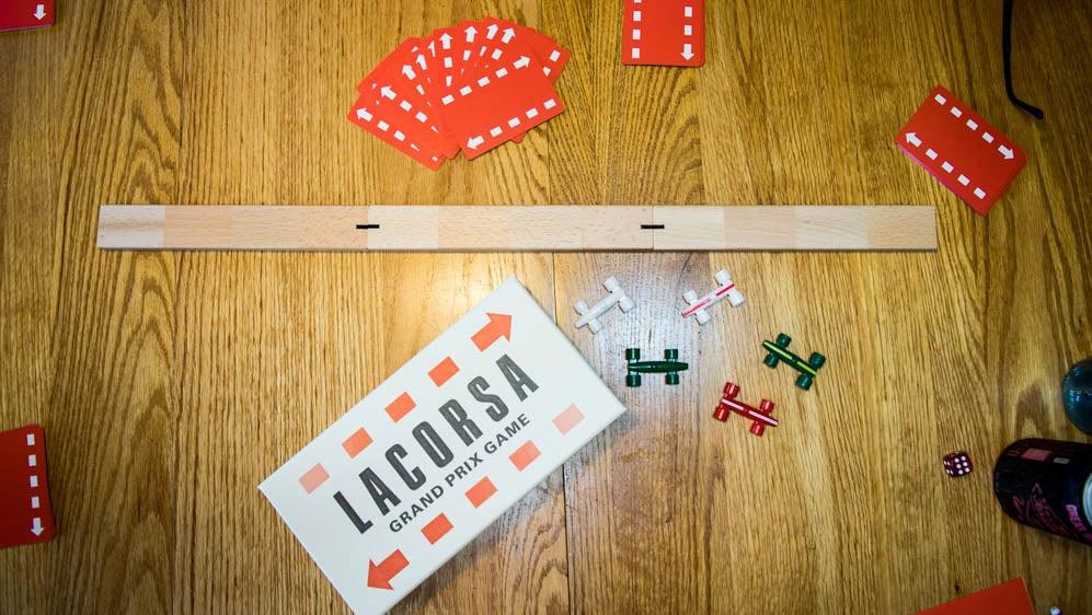 When we talk racing games, we're usually thinking video games, but I'm going to challenge you to think a little differently: imagine a racing board game. A tangible game you can play at the dinner table. Something you could bring out at parties and actually, y'know, talk to people. That's what you get with La Corsa.