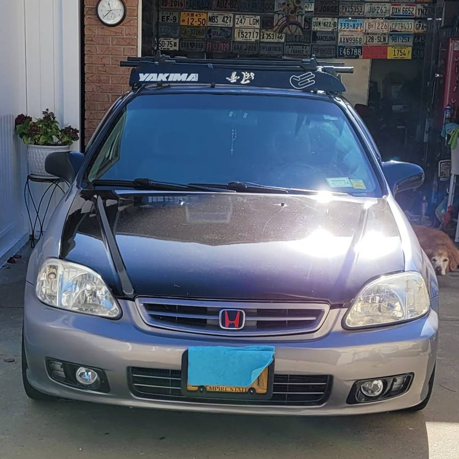 And this Civic is, truly, tuned. It's had a B20 head swapped onto its engine, breathing VTEC life into a lowly base chassis. The engine breathes in and out through aftermarket piping, and there even looks to be a catch can mounted on the firewall. Just ignore the rust under the "Gloss Gun Metal Type R style" paint.