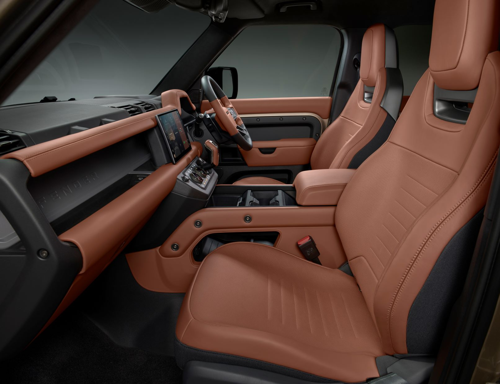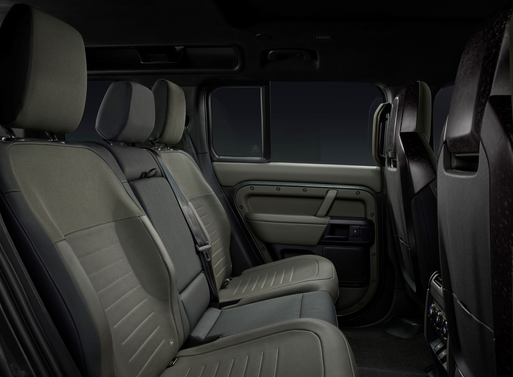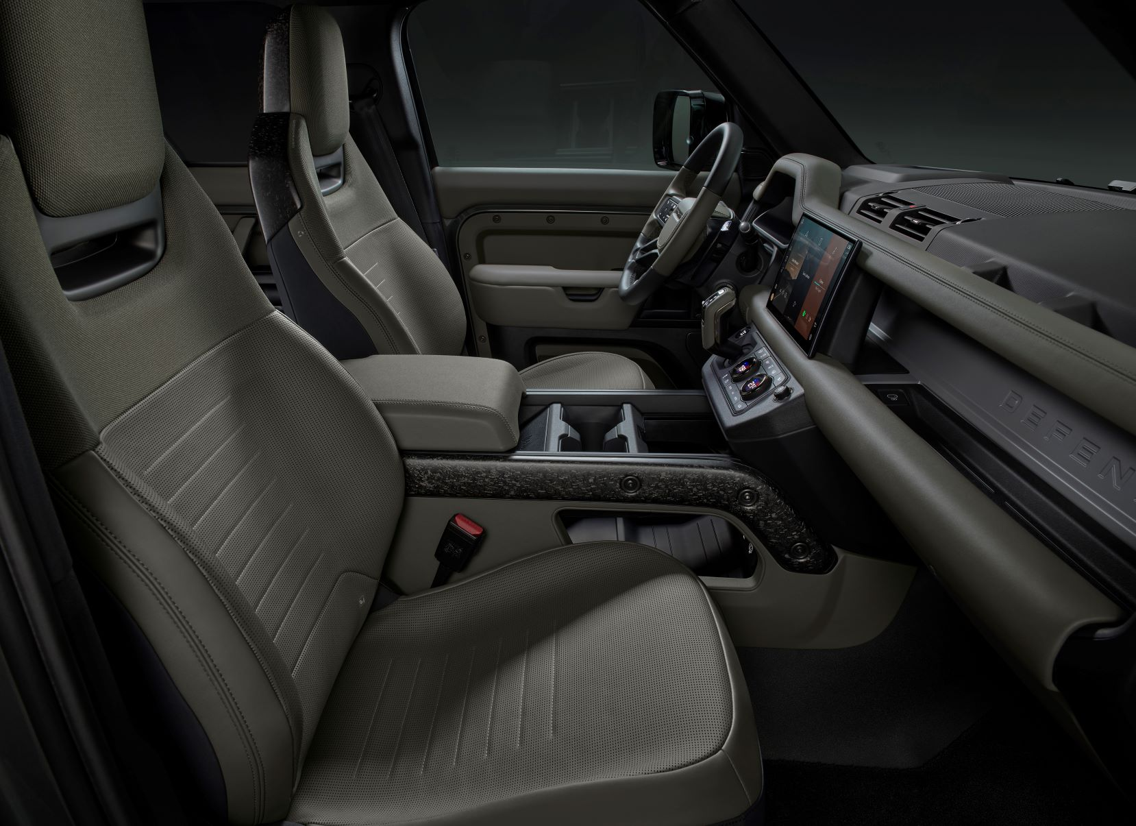 Inside, the Octa is once again fairly similar to the regular Defender. There are two different Ultrafabric options available, and Edition Ones will come as standard in a two-tone Khaki and Ebony color scheme and get some other unique interior touches. First-row passengers sit in new performance seats that have more supportive bolstering as well as integrated headrests, and the rear seat bolsters look more pronounced, too. The front seats also get LR's Body and Soul Seat audio system, which is a very odd thing to experience but is pretty neat. Otherwise, it's a fairly standard Defender interior.