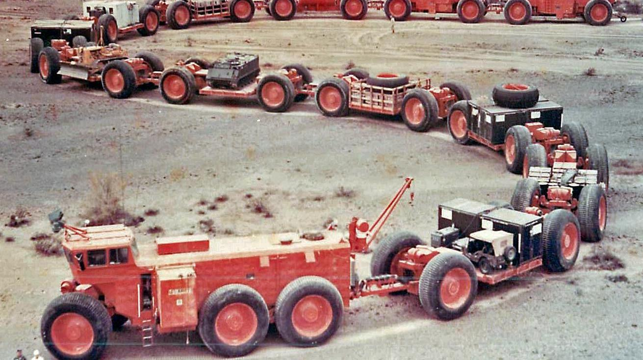 Some crazy how, we've never written a post just about the LeTourneau TC-497 Land Train, and that is gonna change pronto. These vehicles were bonkers. Similar to the SPMT, the length of your land train was limited to your imagination and the number of engine cars you had on hand. The largest stretched 600 feet long. It also featured a unique drivetrain — with electric motors powering each wheel. It's basically a train with rubber wheels. The main cab came with a kitchen and sleeping births for four crew members. Developed for the U.S. Army, the land trains unfortunately never made it past a few prototypes.