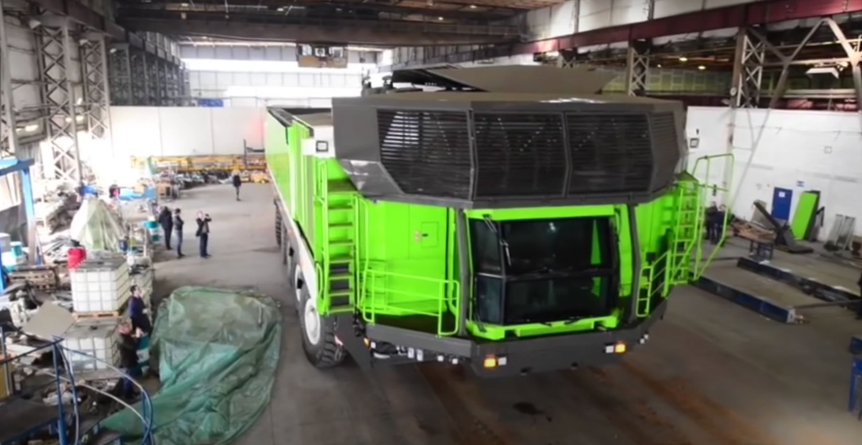 Another giant dump truck, this one hailing from Belarus. This behemoth is capable of moving 496 tons of material in one go, according to the BBC. The entire vehicle weighs 385 tons. Two 16-cylinder diesel engines send power to four electric motors which power to eight tubeless pneumatic tires. It works shuttling rocks around mines in Siberia.